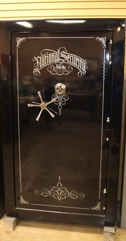 High gloss black finish, Includes 2 foldable custom racks, 1 key, suede and custom Led light interior, has 20 set rifle rack, top compartment. measures 6 feet by 42.5 inches. In good condition, very lightly used. Model #MG-30 Serial #261520