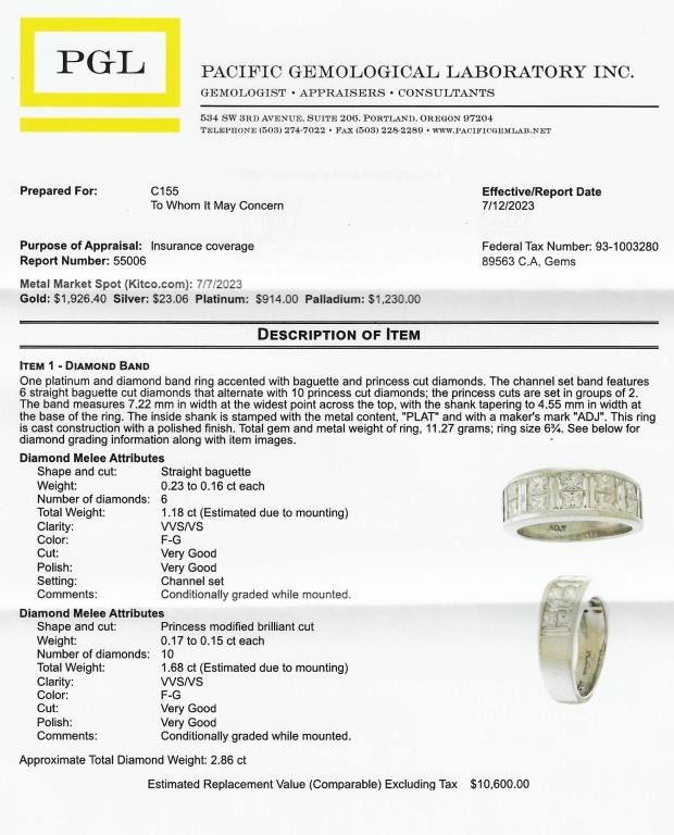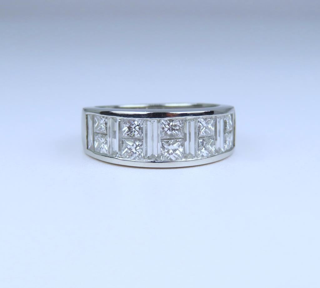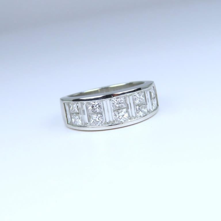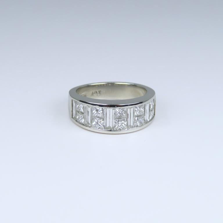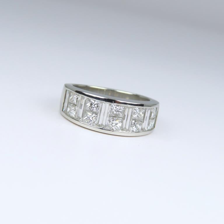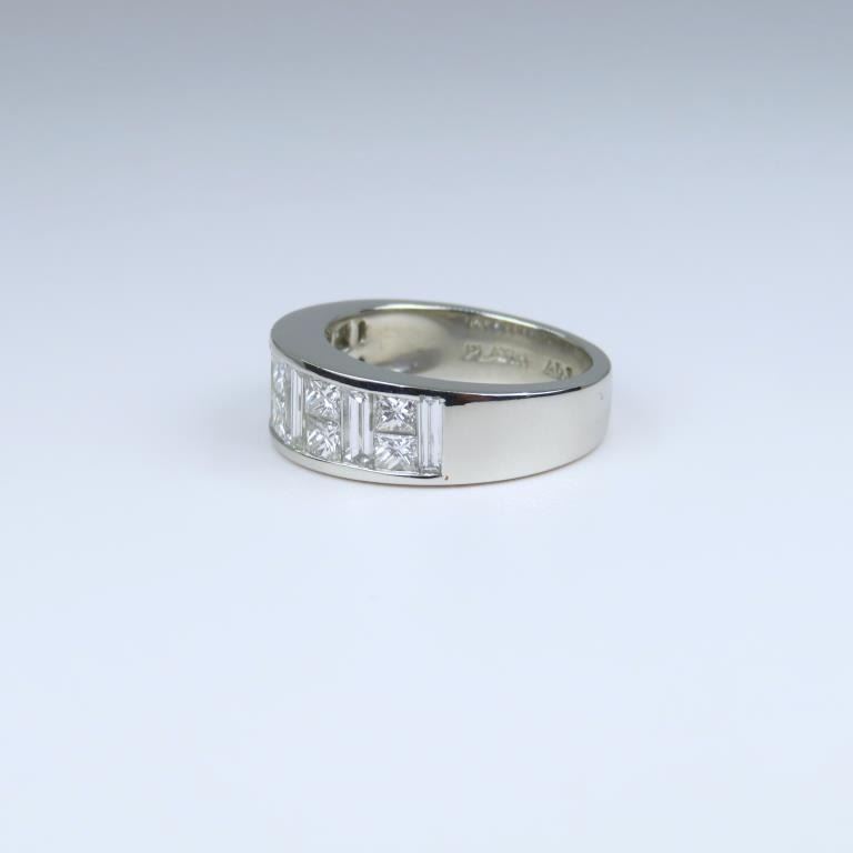 with 16 invisibly set princess and baguette cut Diamonds weighing approx. 2.86 carats total, size 6 3/4 with fine F-G colors and VVS/VS clarity. Exquisitely custom crafted in platinum with the finest of craftsmanship. Full Retail Appraisal - $10,600.00