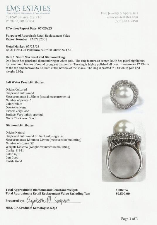 Lot 194a Elegant South Sea Pearl and Diamond Ring