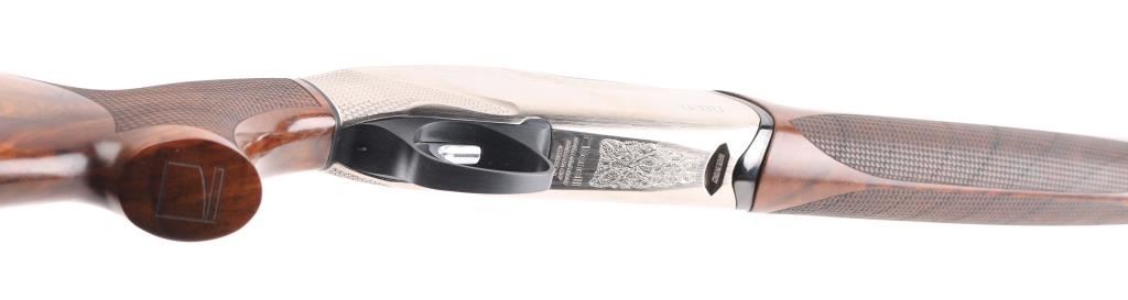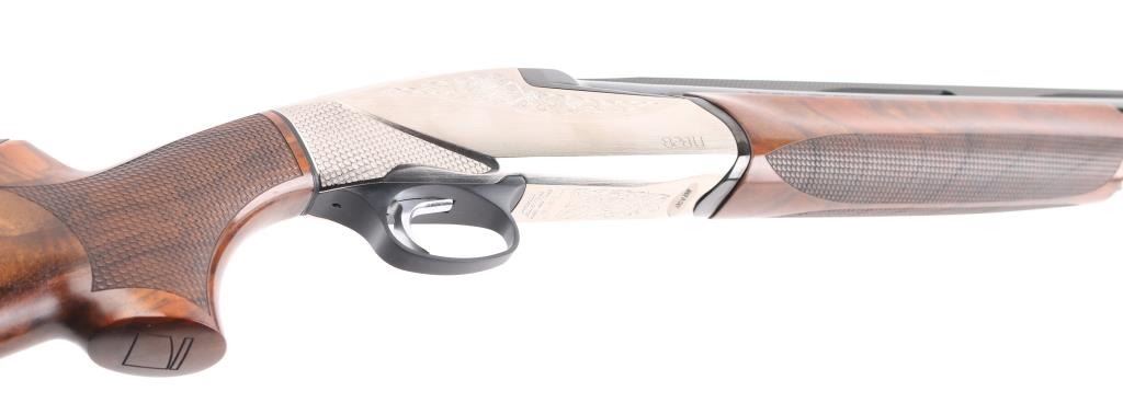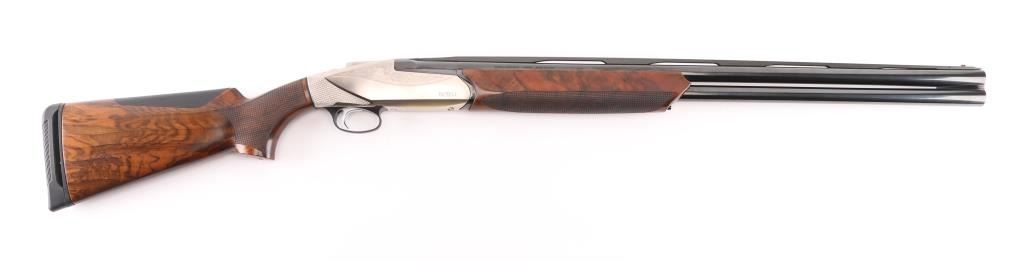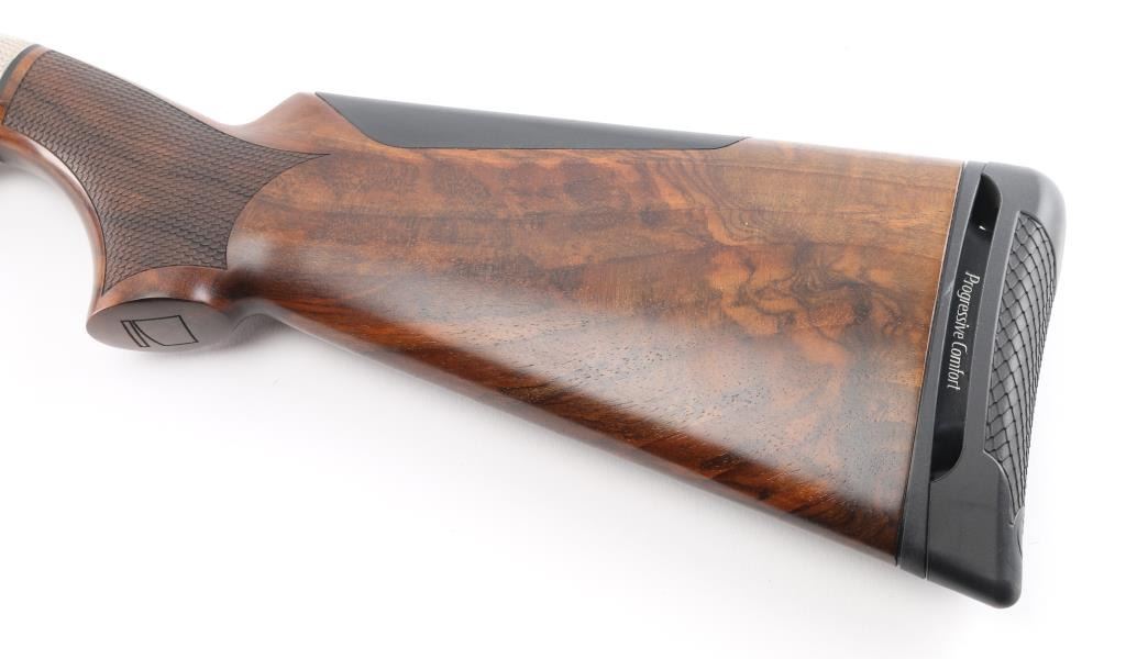 Finely crafted Italian over-under shotgun, 28" barrels with gloss blued finish, Mod/Imp Cyl removable chokes, red fiber optic front sight, AA-grade satin Walnut stocks, forearm stock is textured, textured wrist and pistol grip, padded cheek piece, engraved nickel-plated receiver, smooth trigger, Benelli Progressive Comfort recoil pad. Shotgun exhibits little to no visible wear. bores are bright. Stocks are excellent. Stock measurements: Drop at comb - 1 ?”, drop at heel - 2” & length of pull - 14 ?”. Includes the original factory hard case with 3 additional chokes (full, imp mod, & cylinder), choke tool, oil, manual & stock adjustment shims. Condition is near NRA Perfect ***Modern Firearm***