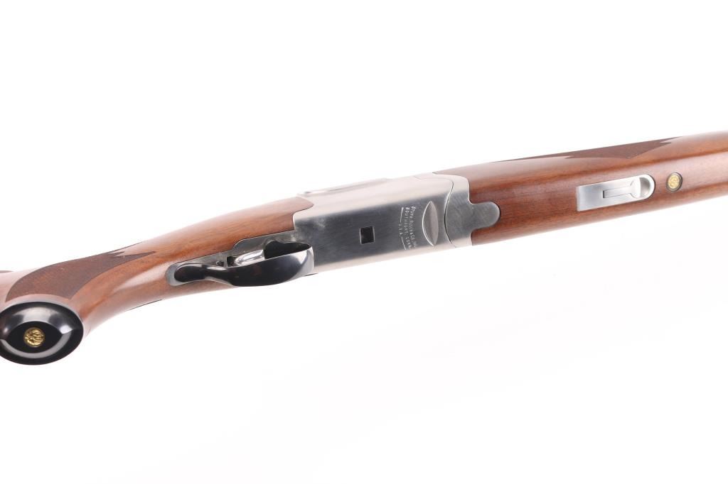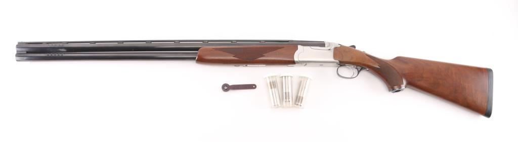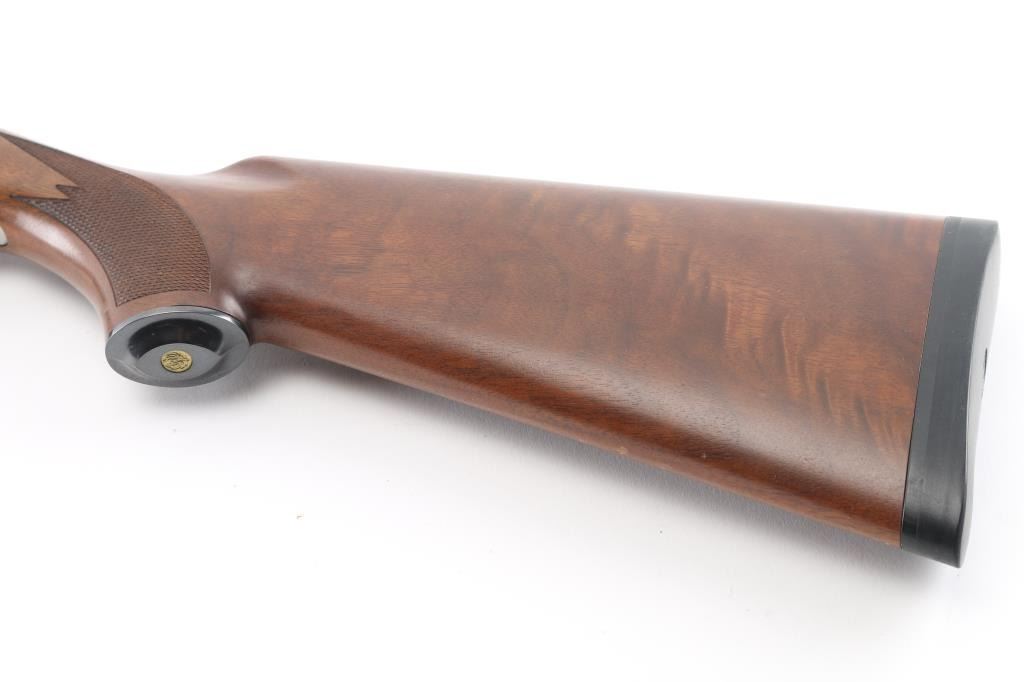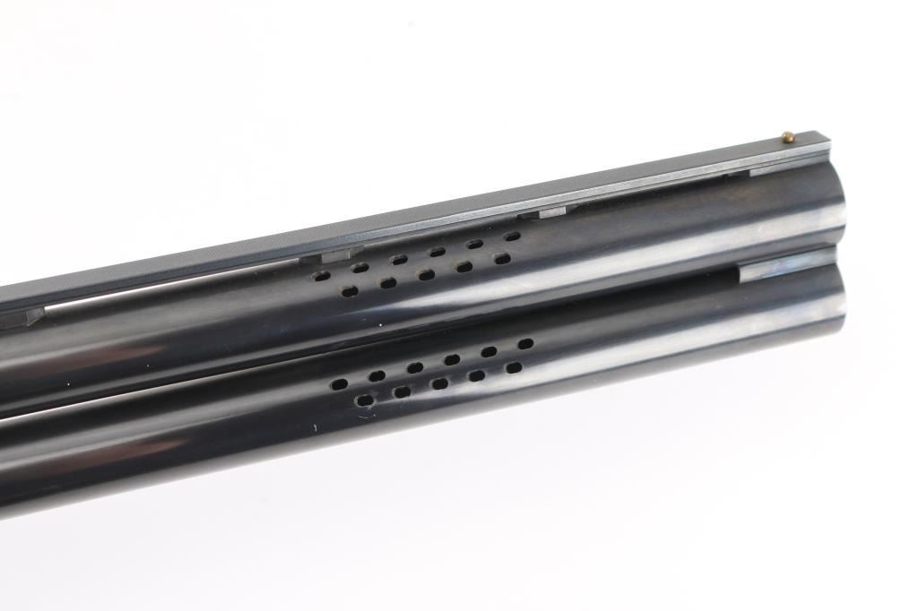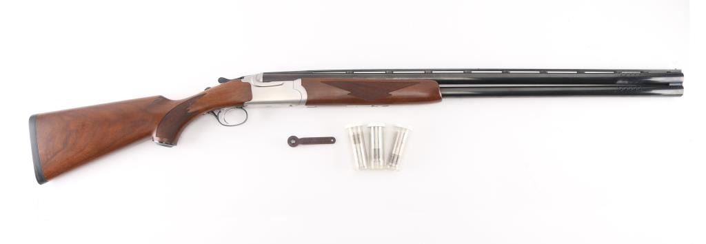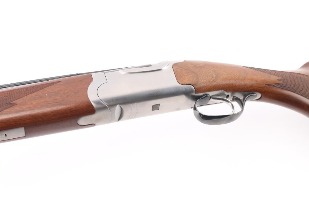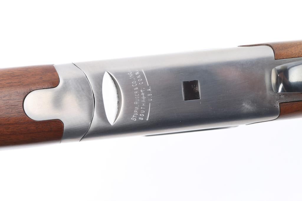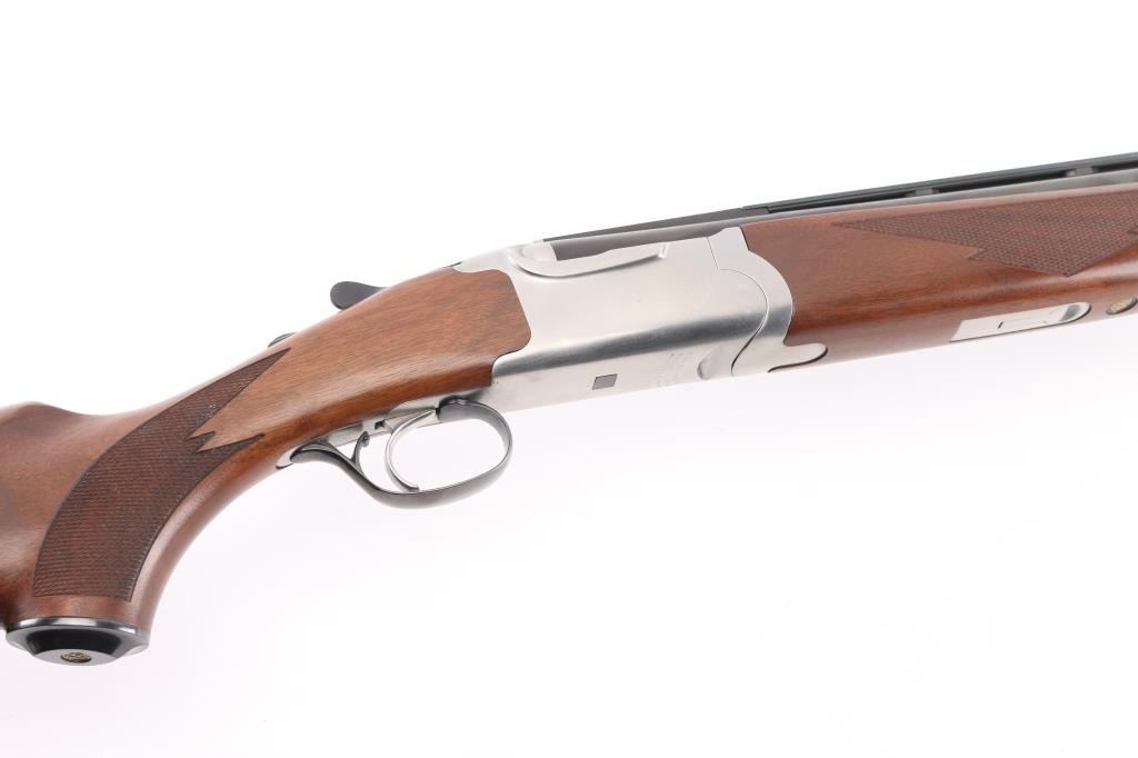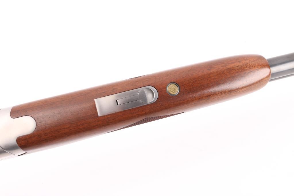 Over-Under shotgun features blued 30" ported vent rib barrels, stainless steel receiver, checkered wood forend, curved grip stock with checkered wrist panels, solid rubber butt pad, steel grip cap with Ruger medallion, single trigger, tang safety selects barrel, selective auto ejection, brass front & mid beads. Accepts up to 3" shells. Posting attributed to Mag-na-port. Choke tubes installed (Full over Mod). Barrels and other blued parts retain 95% finish with handling marks. Action is near excellent condition with small scratches. Wood is excellent. Approx stock measurements: 14" Length of Pull, 1-1/2" Drop at Comb, 2-1/2" Drop at Heel. Includes additional choke tubes (SKT, SKT, IC) & wrench. Condition is NRA Excellent *** Modern Firearm ***