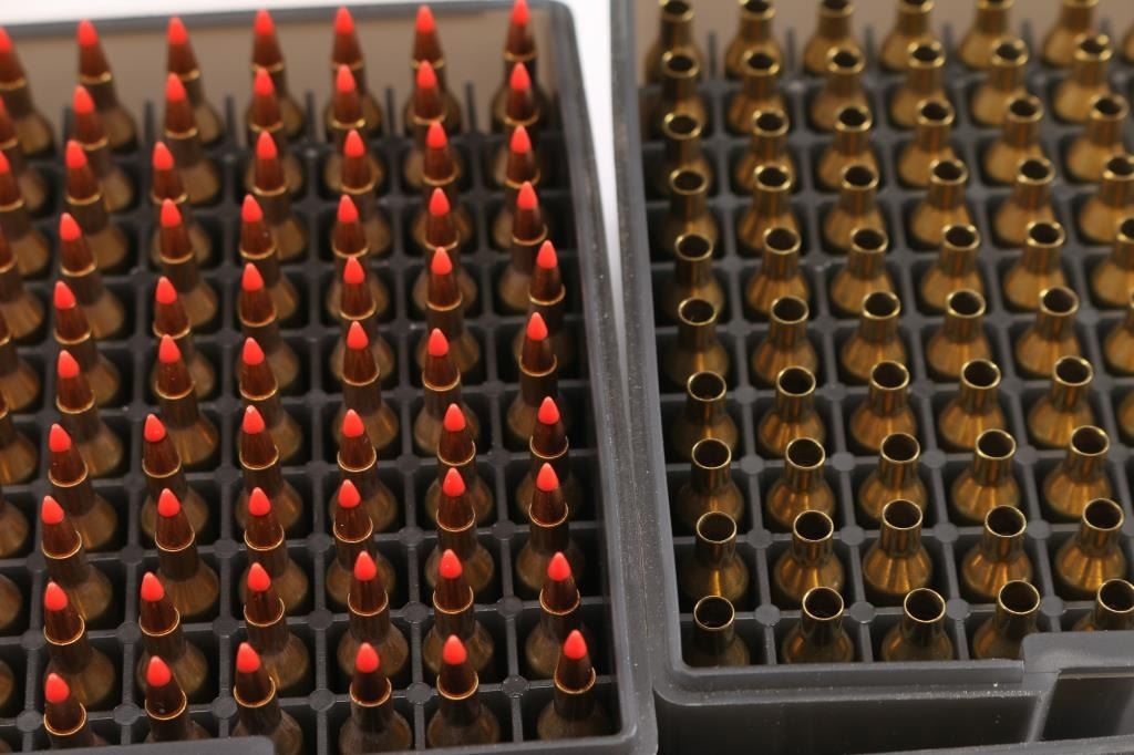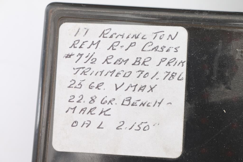 Approx. 200 rounds of 25gr. v-max reloads, approx. 200, .223 brass necked to 17 REM, approx. 40 rounds of Berger reloads.
