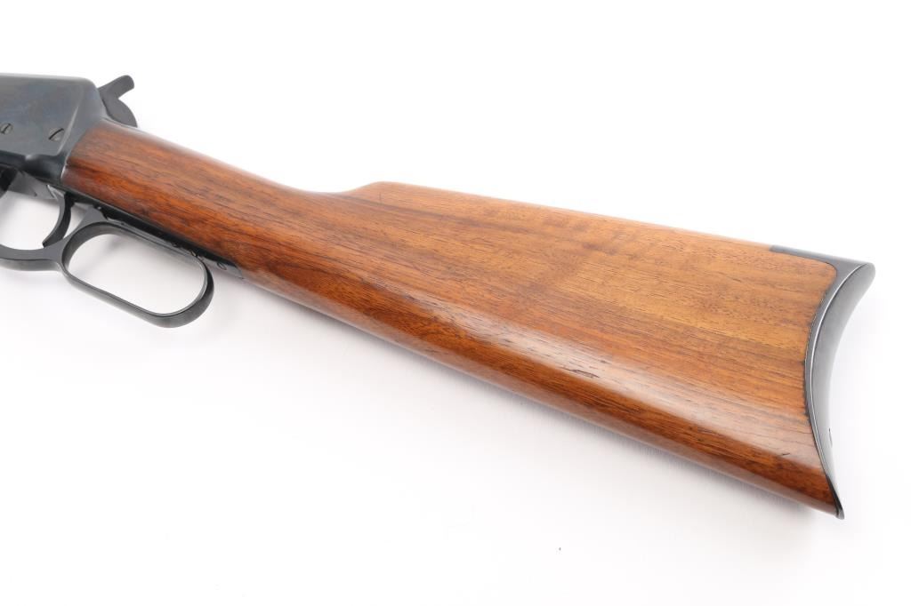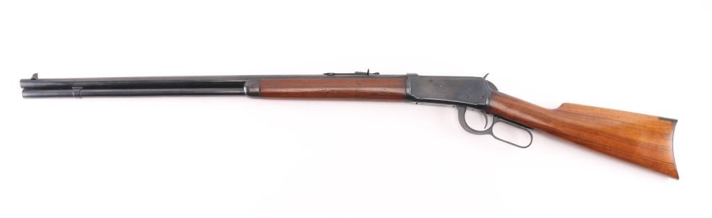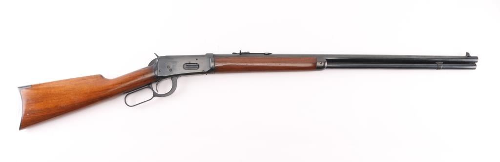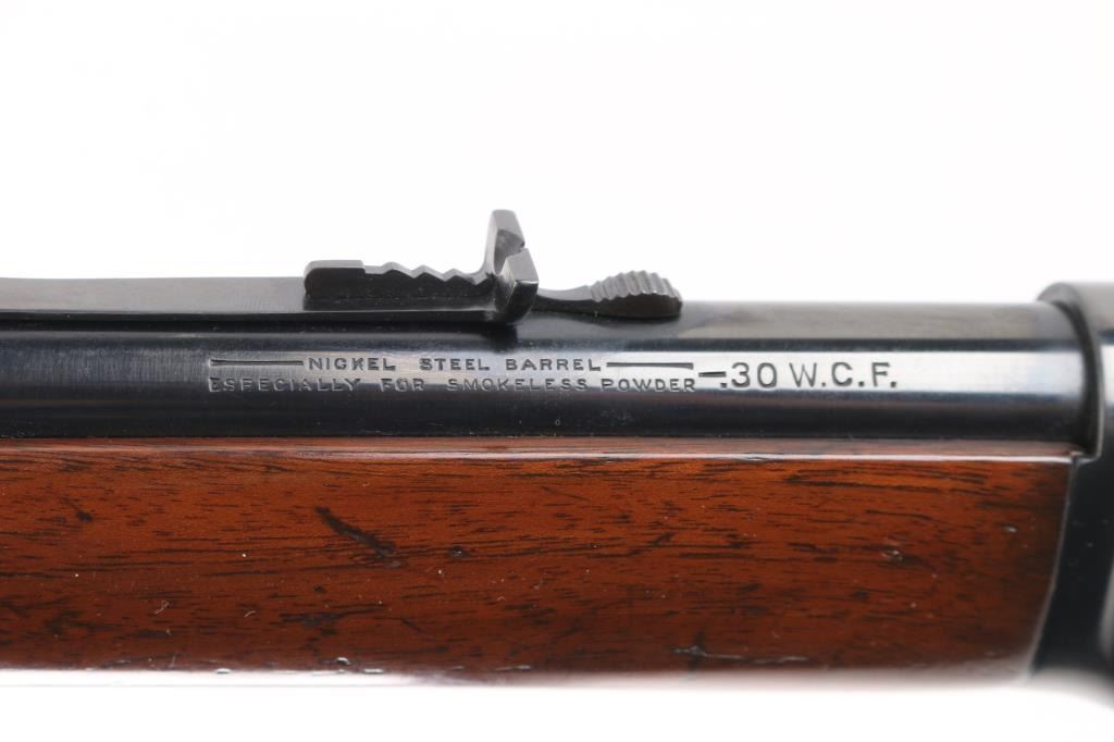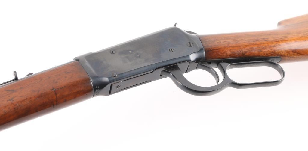 Vintage pre-64 lever-action rifle manufactured 1924. 26" barrel with full length tube magazine. Ramped post/bead front, and adjustable sporting rear sight.. Straight walnut stock, forearm. crescent steel buttplate. Standard Winchester markings on barrel. Winchester proofs. Rifle has been professionally restored , re-blue & wood looks great. Action is smooth/tight.. Bore appears very good/bright. re-blued finish is about 98% with some very minor scratches. Wood is excellent, A really nice job. NRA Condition-Excellent as Restored. C&R Firearm.
