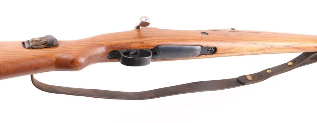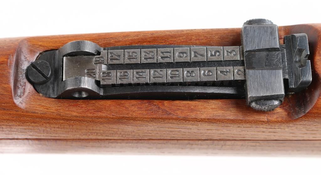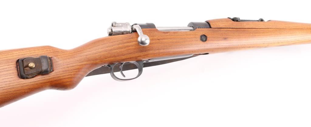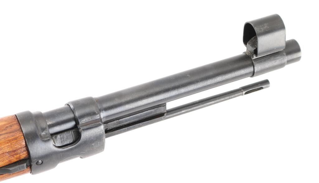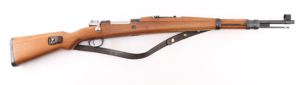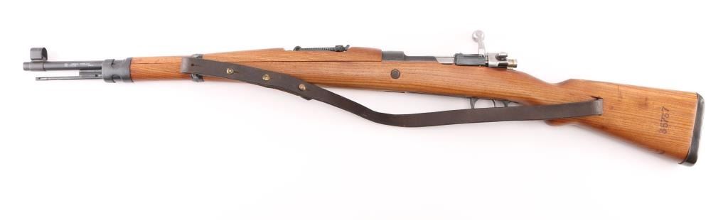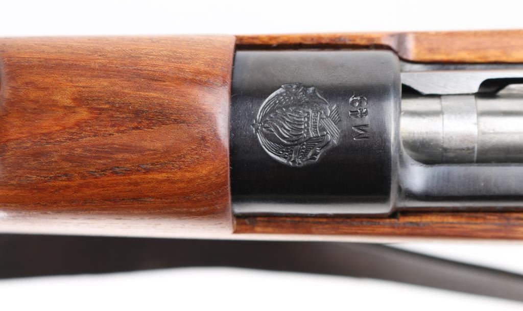 Bolt-Action. Model M48 produced 1950-1965. Yugoslavian made version of the German K98K. Yugo crest and "M48" on receiver ring. Features arsenal re-blued finish, chrome bolt, wood stock & handguard, 24" barrel, hooded blade front sight, tangent style rear sight, cleaning rod, bayonet lug, sling slots, manual safety. Matched sn's on receiver, bolt handle,stock, and floorplate Bore is excellent/bright. Action is smooth/tight. Retains 99% blue. Wood is excellent. Modified K98 sling attached. MMC, S,C, CA. import markings on barrel. NRA Condition-Excellent. C&R Firearm.