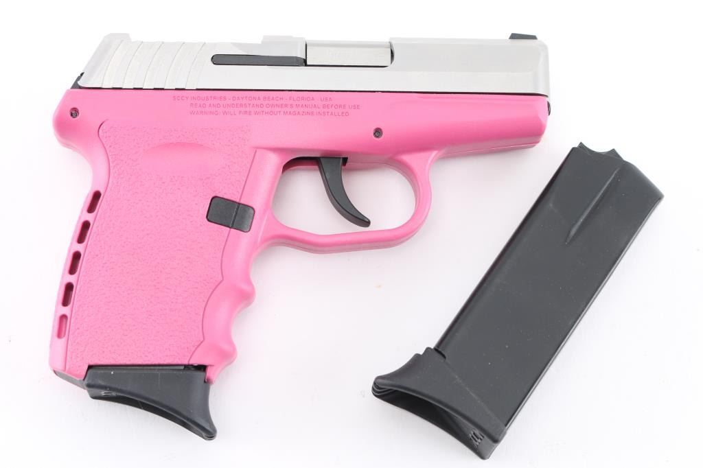 Made in America, the CPX-2 is a compact, hammer-fired, DAO pistol chambered in 9mm. It features a 3" barrel, stainless steel slide, pink polymer frame, dot white sight, a CT rear optic sight is included in the box with hardware, tools, and battery (needs to be attached}. A 9lb trigger pull. Metal finish looks great, frame looks great. Bore is excellent. Overall gun looks near new. Comes with original factory cardboard box, owners manual, lock and two (2) magazines. Condition is NRA Excellent