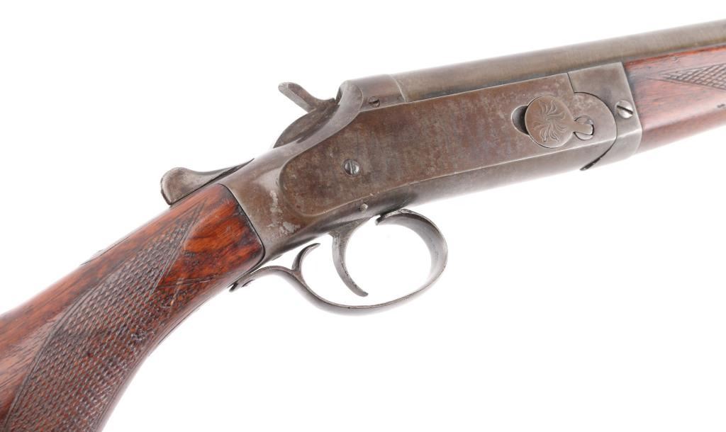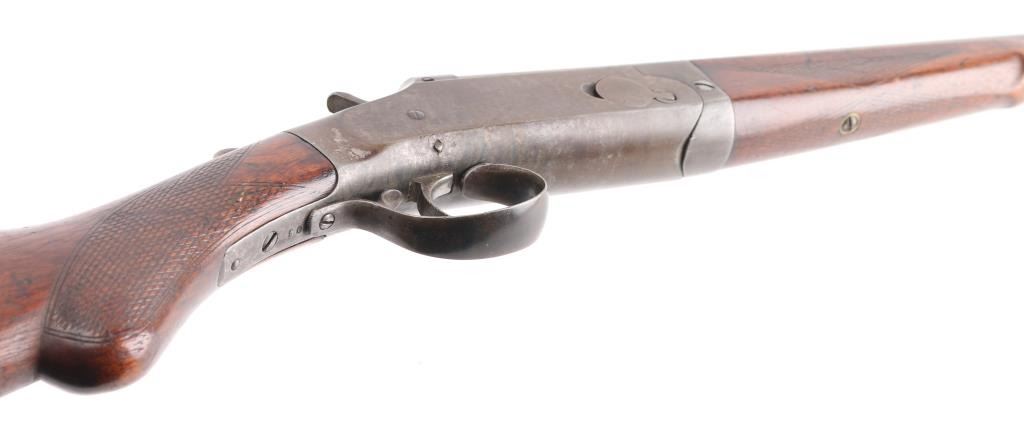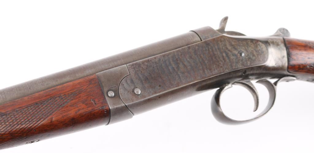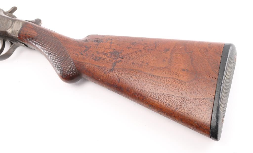 American made take down shotgun, approximately 32" barrel, bore is scratched, bead front sight, checkered and exposed hammer, checkered barrel release lever, smooth trigger, checkered forend and grip, the metal has developed a brown patina, stocks are scratched and pitted. Condition is NRA Good. *C&R Firearm*