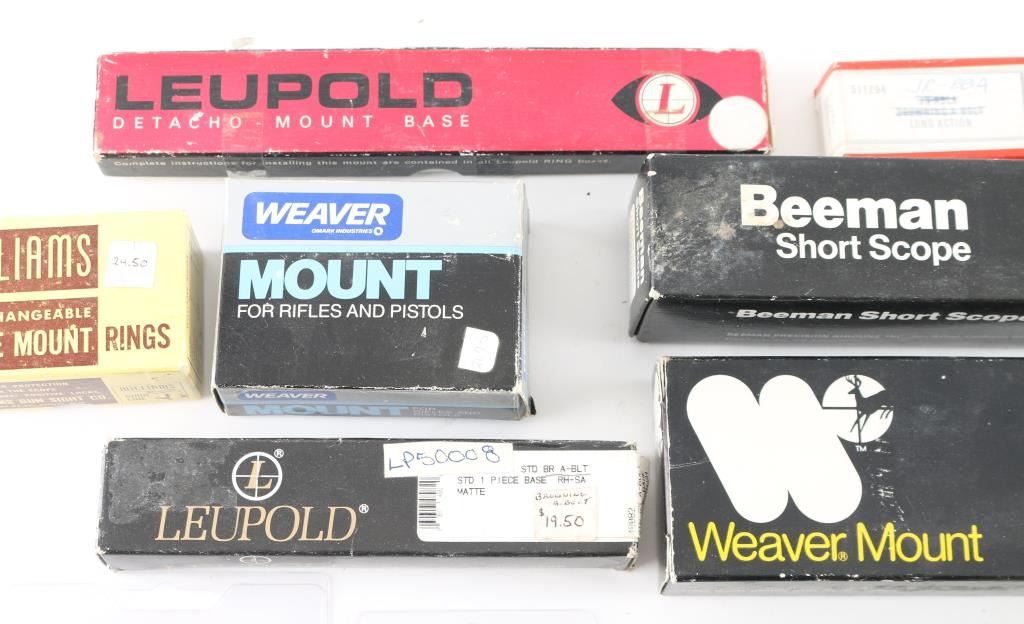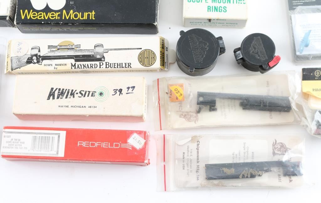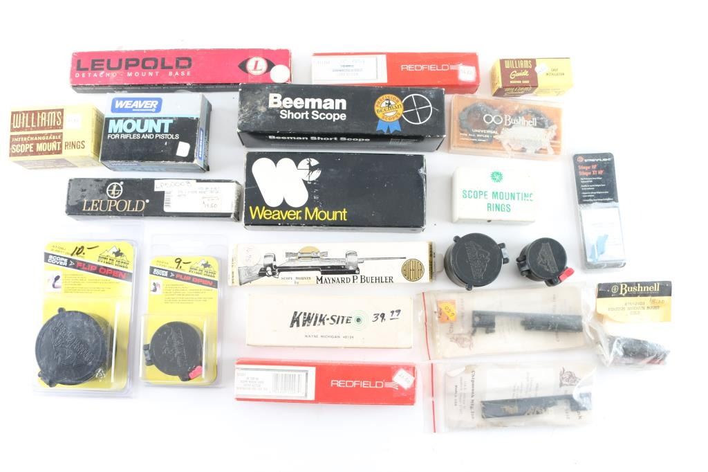 Includes weaver scope mount, a Leupold scope mount, an unmarked all-polymer rear peep sight unit, multiple different sizes rings and covers for different scopes. Weaver scope mounts for pistol and rifles and more.