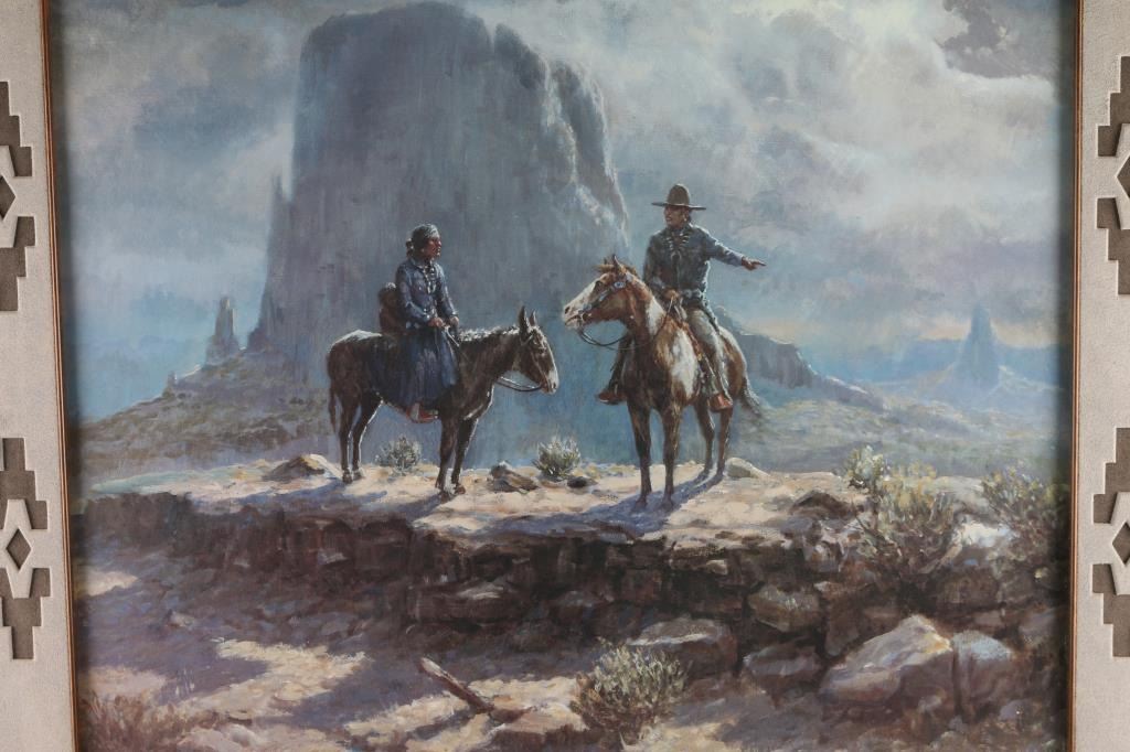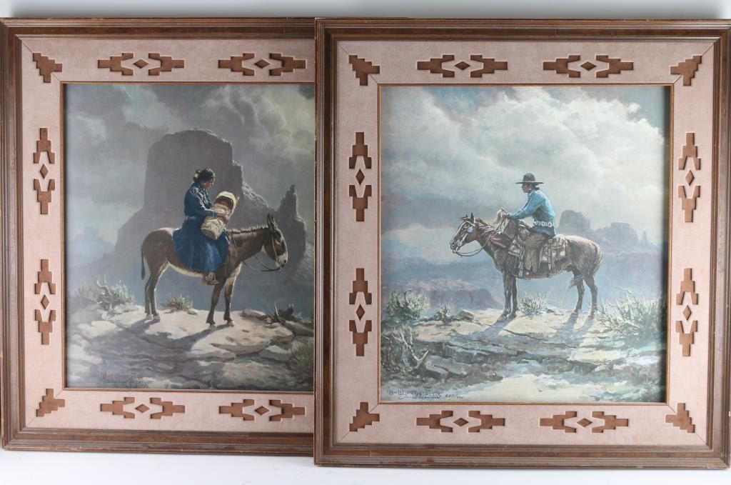 All by artist "Olaf Weighhorst" all signed and numbered 557/1500. Entitled "The Navajo Family", "The Madonna", and " The Navajo" beautifully framed and geometric matting. Two of which measure the same at "22x19" The blue matted print measures 28x22.