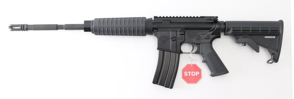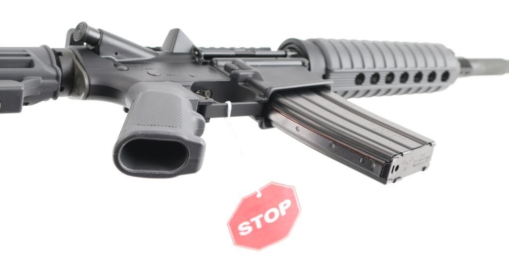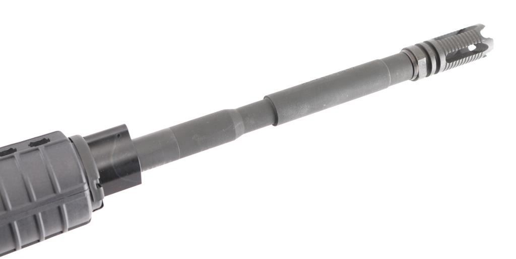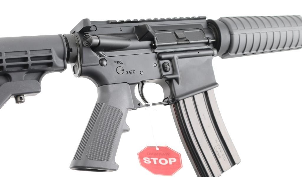 American made AR-15 platform carbine semi-automatic rifle, 16" stepped-down chrome-moly barrel with a 1:7 twist and a 4 slot stand-off flash hider/device, carbine-length gas system, chrome-lined BCG, matte black finished flat-top receiver, matte black polymer mil-spec A2 grip, handguards, brass deflector, forward assist and charging handle. Comes in factory cardboard box with user's manual and (1) metal 30 round magazine. NRA Condition is Excellent. Modern Firearm.