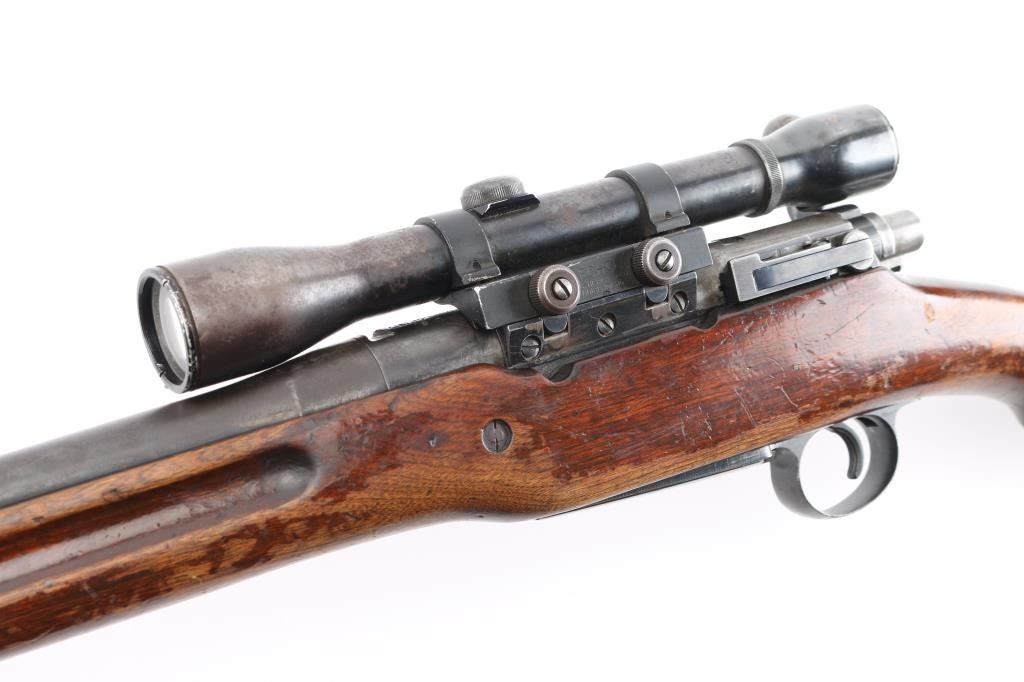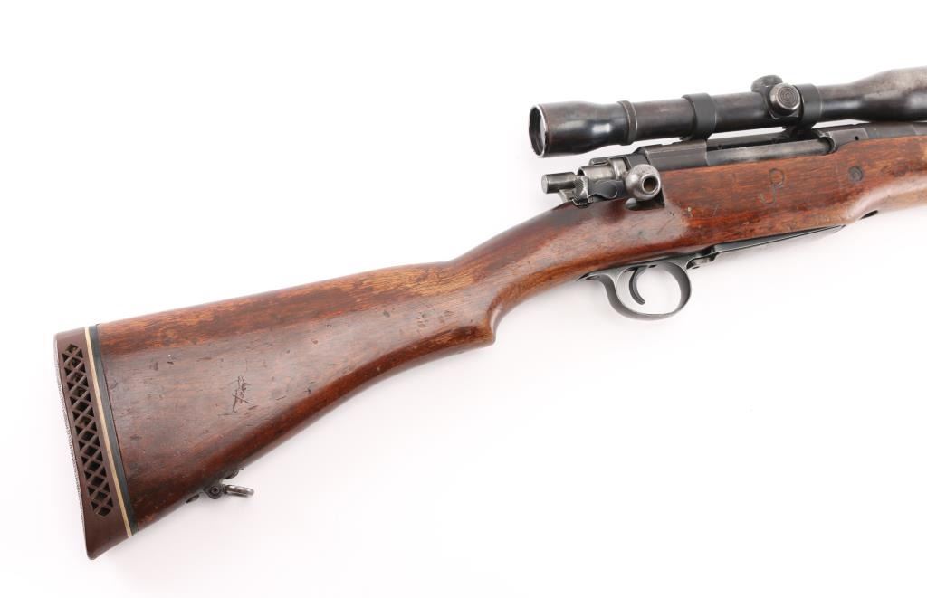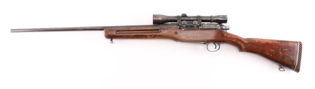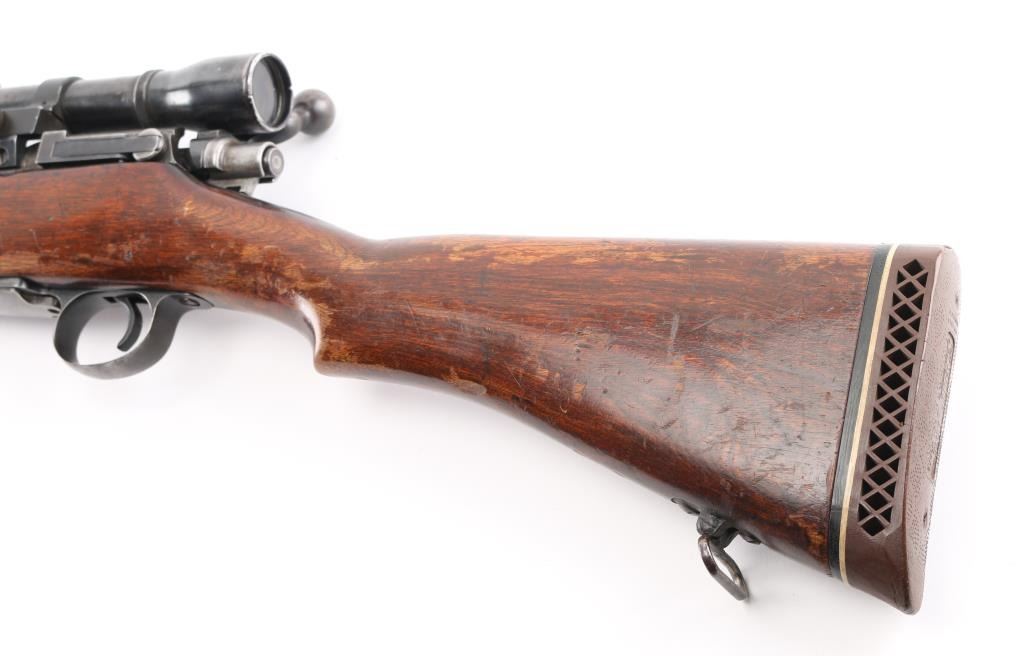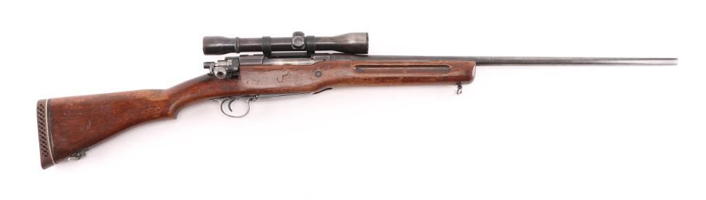 This is a U.S. Military rifle that has been sporterized. Original thinning blue finish . 26" barrel with sights removed, manual safety, hinged floorplate, sling swivel studs. Smooth wood pistol-grip , cheek piece, original modified stock stock vented rubber recoil pad. Mounted with a vintage Weaver K4 scope with Echo base & rings, clear optics, scope has handling loss. Bore appears very good, strong rifling. Action is smooth, wood is sound with handling loss, "JP" is carved on right stock above the floorplate. NRA Condition-Good as Sporterized. Modern firearm.
