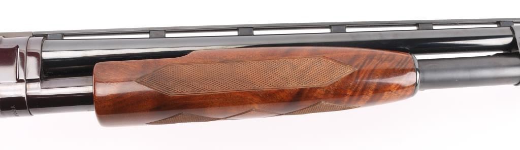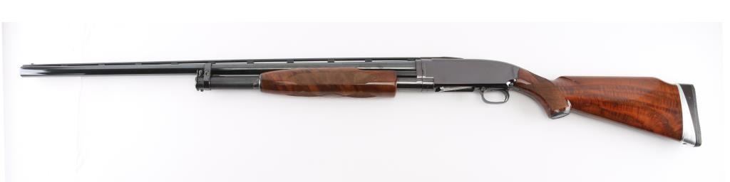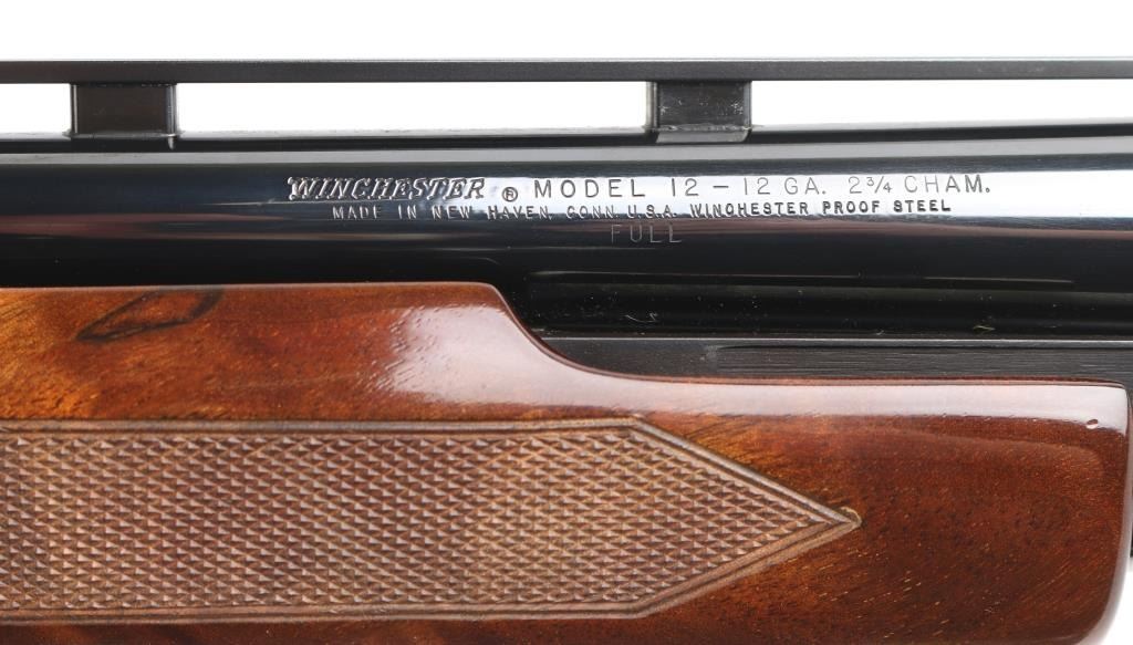 This shotgun has been professionally restored. Beautiful Winchester Model 12 Y Series (1972) 12ga Trap Shotgun. Chambered for 2 3/4. Full fixed Choke. 30" vent rib barrel with front & mid white sighting beads. Jeweled bolt & lever. Griggs Recoil Redirector. Highly figured high gloss finish wood looks amazing, checkering is fine, "Winchester steel grip cap. Bluing on the barrel is all solid. Plum colored receiver & tube are excellent. Bore is in great condition. Pump runs very smooth and the trigger is solid with a quick crisp break. Push button safety. NRA Condition-Perfect as Restored. C&R Firearm.
