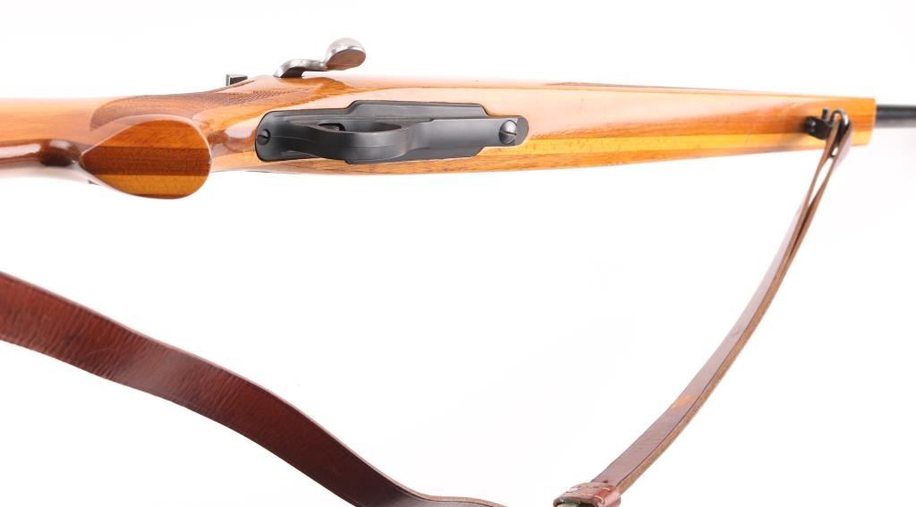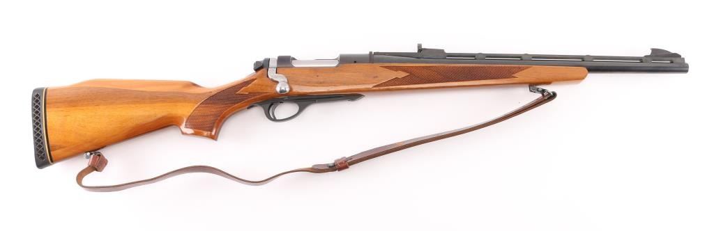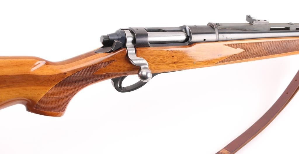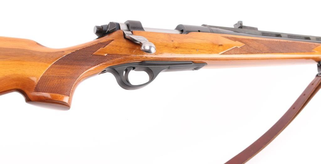 SN: 47141 The Remington Model 660 is a push feed, bolt-action rifle manufactured by Remington Arms from 1968 to 1971. The rifle was intended as a replacement for the Model 600 but itself was replaced by the Mohawk-600. This gun has a 18 3/4" blued barrel with raised post/bead front sight, adjustable rear sight and is chambered in .350 Rem. Mag. The wood stock has swivel studs, swivels and a blind mag well with checkering at the wrist and forend. Stock is blond/walnut colored. Factory recoil pad, The receiver is drilled and tapped for scope base. The barrel and receiver look good with only a small amount of wear showing on the barrel. The bore appears excellent/bright. A few minor scratches on the wood. NRA Condition-Very Good. C&R Firearm.