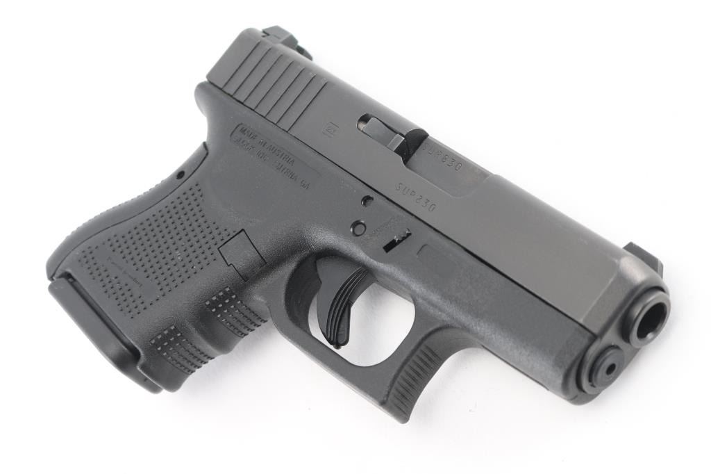 Made in Austria this is a semi-auto, striker fired, pistol. Perfect for EDC this little guy sure packs a punch being chambered for .40 S&W ammunition. It has a 3" barrel, stainless slide, synthetic frame, and safety trigger. Comes with original hard case, one magazine and owners manual. Metal finish looks great. Frame looks great. Bore looks good. Condition is NRA Excellent. *Modern Firearm*