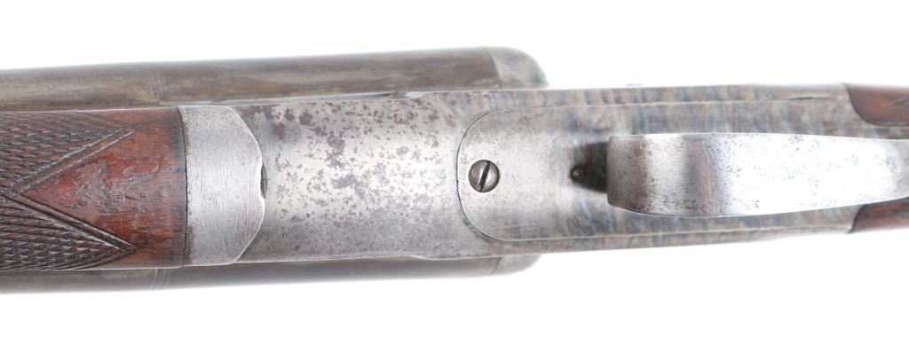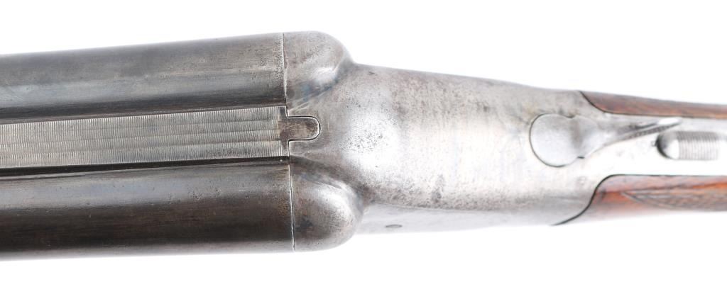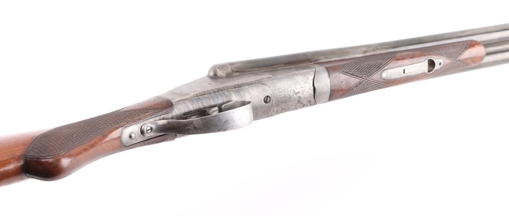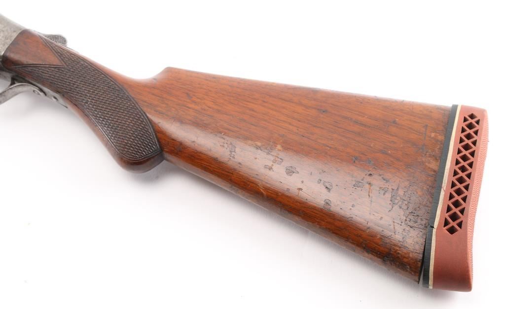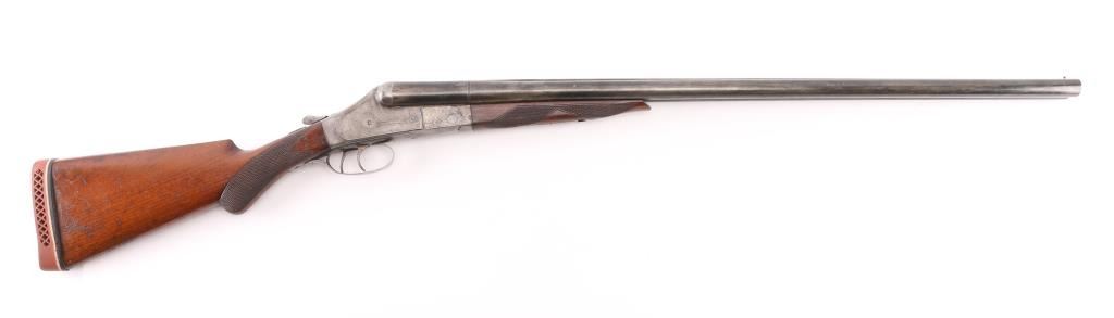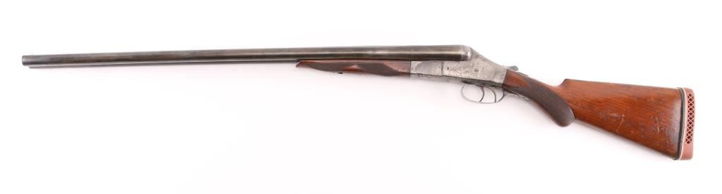 Nitro Hunter: Trade name manufactured by Crescent Firearms, Norwich, CT, and retailed by Belknap Hardware Company of Louisville, Kentucky. "Nitro" implies that it was intended for smokeless powder. 30" barrels with brass bead. double triggers, sliding tang safety, checkered forearm & grip, rubber recoil pad added, a bit oversized. Bores are very good/bright, action works well, barrels are about 60% blue, receiver is mostly in the white with traces of casehardened colors, scattered light pitting, wood is sound with scratches/dings. NRA Condition-Good. C& R Firearm.