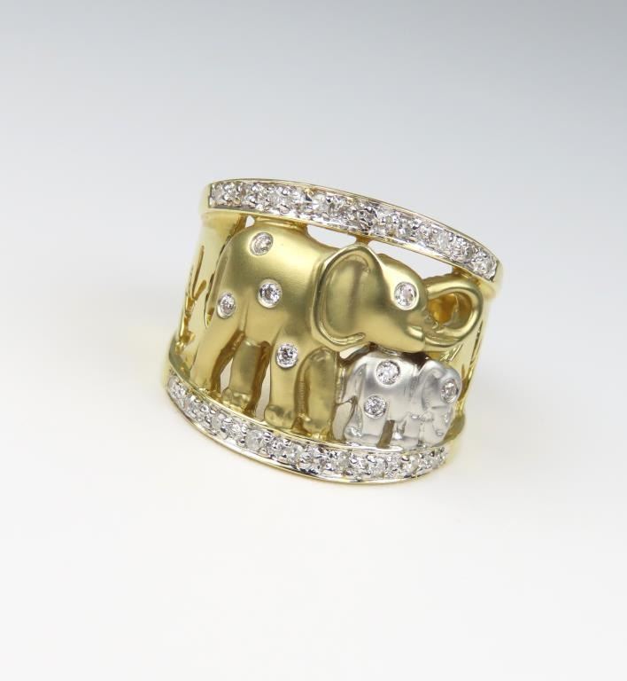 Lot 743a Amazing Elephant Mother with Baby Diamond Ring