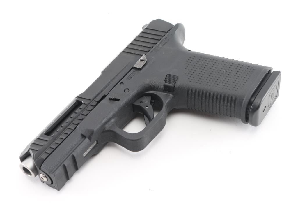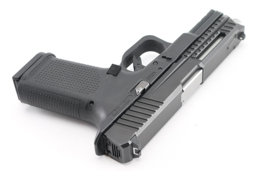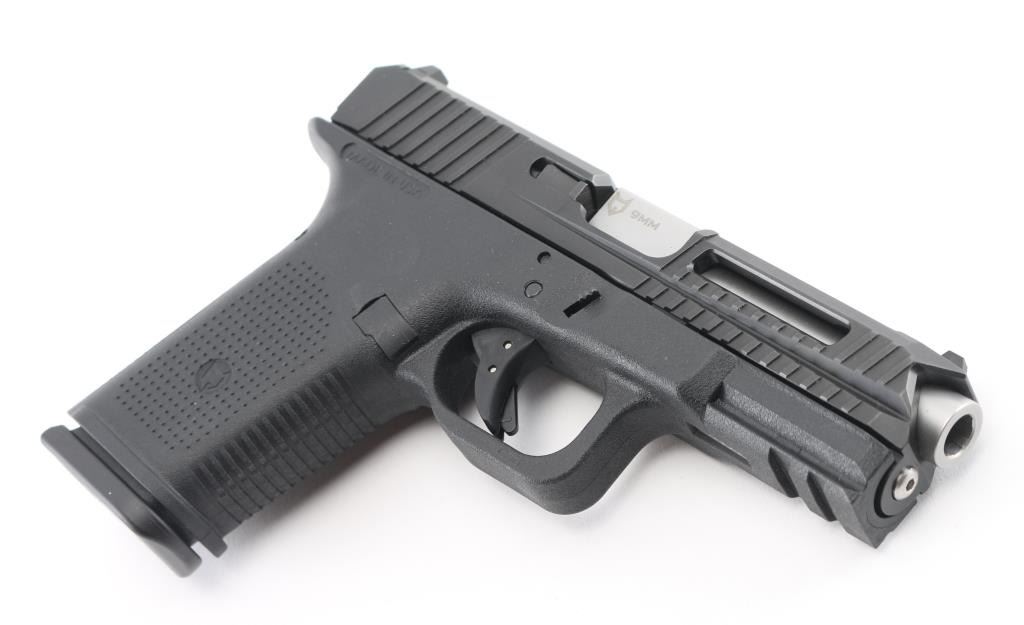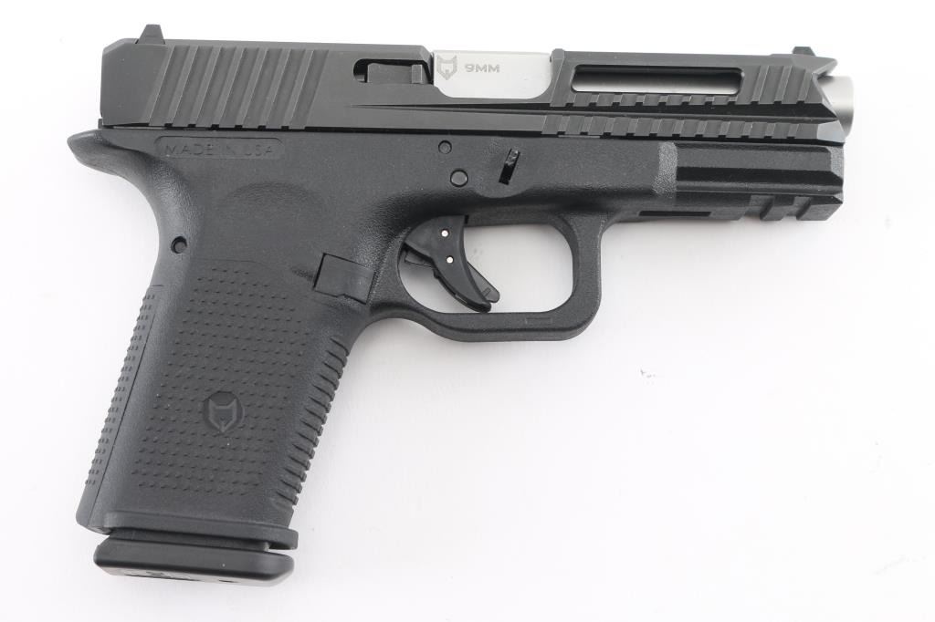 Made in the U.S.A. the "Timberwolf" is a semi-auto, striker fired, pistol chambered for 9mm ammunition. It features a stainless slide with cut outs and extra serrations at the front of the slide. The synthetic frame has an accessory rail, safety trigger, and a 4" Lone Wolf barrel. Comes with the original factory hard case, owners manual, extra backstraps and one Glock magazine. Metal finish looks great. Frame looks great. Bore looks great, dusty. Condition is NRA Excellent. *Modern Firearm*