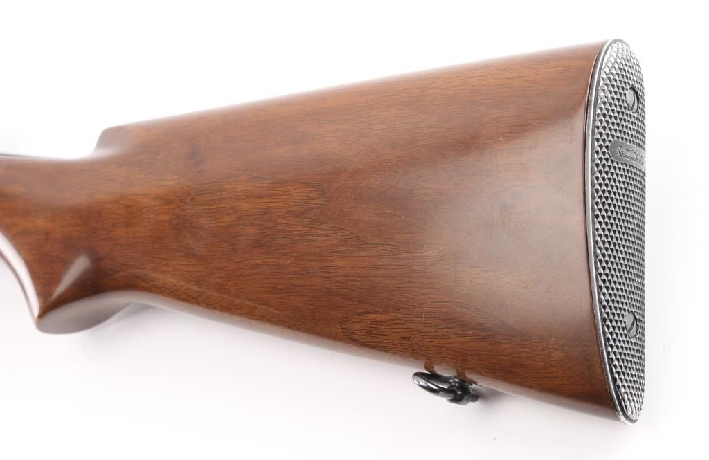 This is a very rare Krieger detachable magazine conversion model 81 "Woodsmaster" Done in the late 1940's to early 50's by R. Krieger & Sons of Mt. Clemens, Michigan. Their conversions were done using the rifle’s existing 4/5 round box magazines on models 8/81's Rifle has been refinished.. 22" jacketed barrel with blade/bead front & sporting rear sights, rear sling swivel. barrel stud has been removed. Factory checkered steel buttplate. Bore is dark/pitted, refinished wood is excellent, reblue is about 94% with minor scratches/rubs. Some friction wear on the magazine. NRA Condition-Fair.(Bore) C&R Firearm.