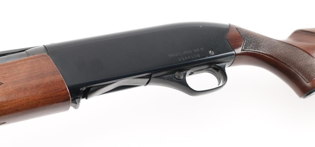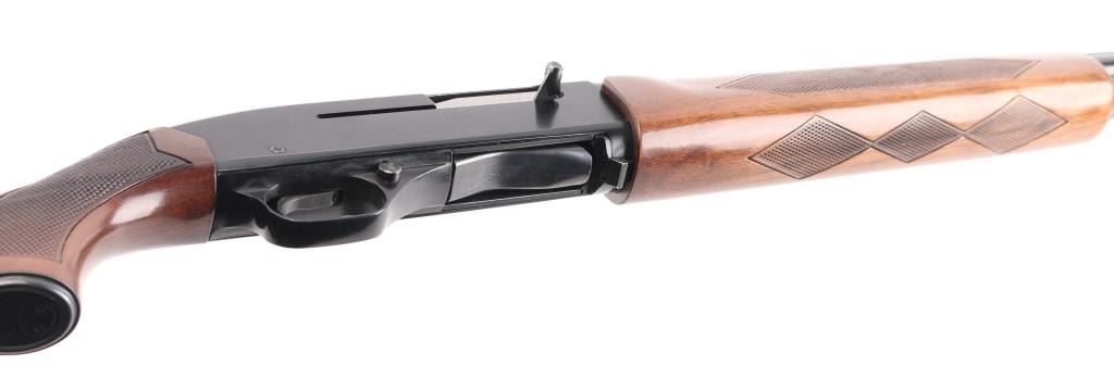SN: N544508.American made gas operated semi-automatic shotgun chambered for 2 3/4" 20 gauge shells. Features a blued/black finish, 28" modified choke barrel with serrated ventilation rib, silver bead front sight, half length magazine tube, jeweled bolt, beveled trigger, push button safety, smooth charging handle, press checkered wood forend and pistol grip shoulder stock with red factory recoil pad. Shotgun exhibits approximately 99% of it's original finish with a minor scratch, bore is excellent/bright, wood is excellent. NRA Condition-Excellent. Modern Firearm.