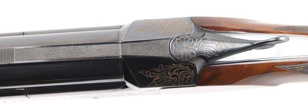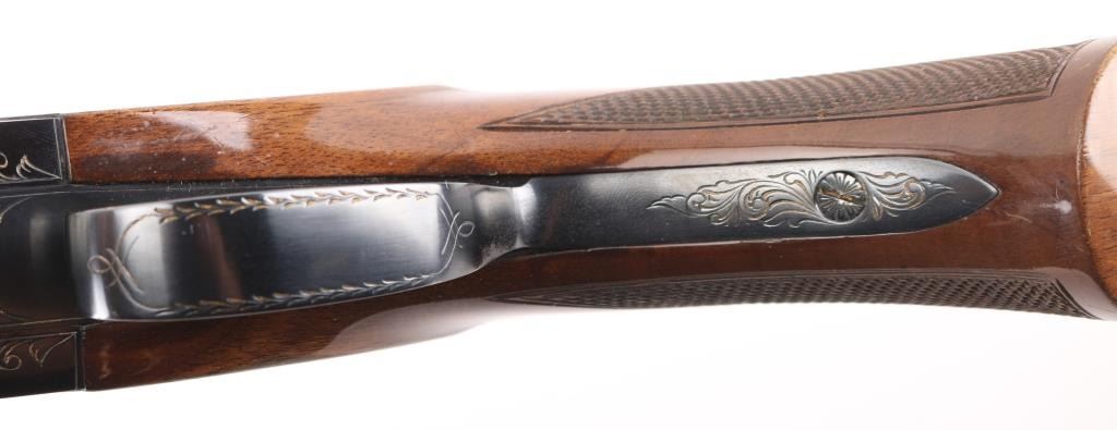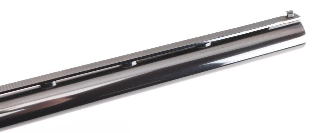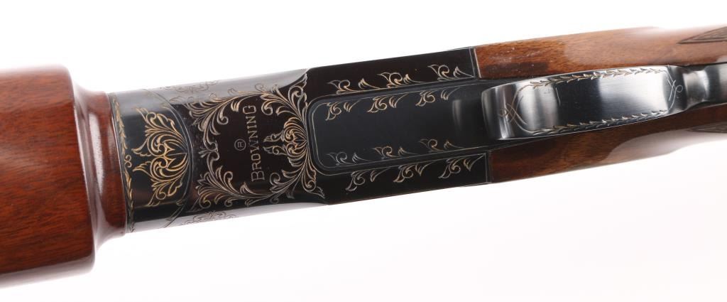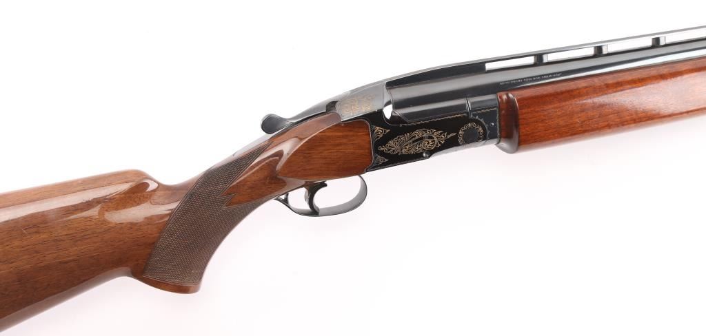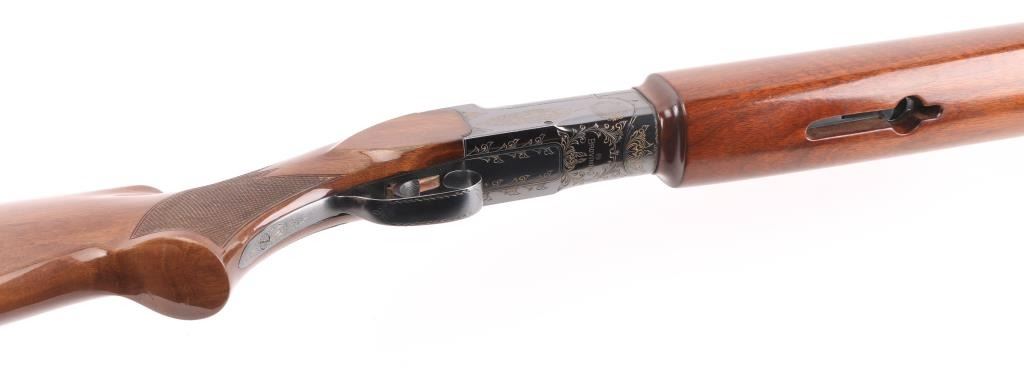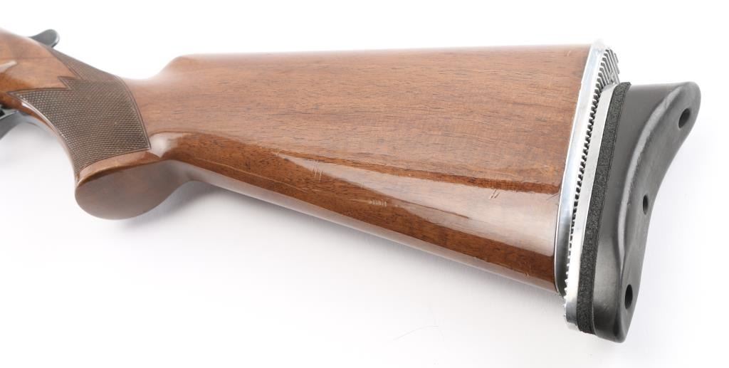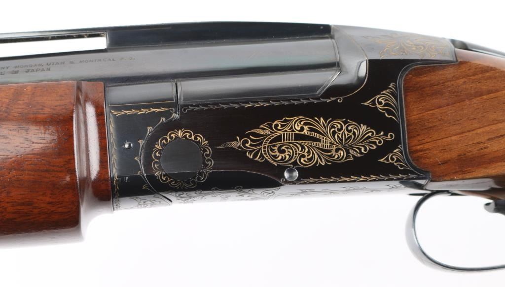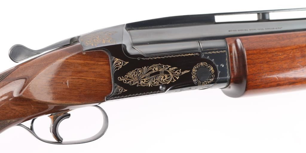 Manufactured in Japan. Browning designed their BT-99 Single-Shot Trap Shotgun specifically for winning trap competitions. The BT-99 trap gun features a high post, floating vent rib with ivory front and mid-bead sights, 32" barrel, extractor only and a chrome-plated 2 3/4" chamber to resist the toll thousands of shells can take on lesser quality guns. The bold beavertail forearm helps absorb recoil and assist hand-eye coordination, Graco adjustable butt pad plate, steel receiver, gold-plated trigger with wide, serrated extension. Walnut satin stocks, smooth forearm, checkered wrist, floral gold toned engraving on receiver, triggerguard. Bore is excellent/bright, wood is excellent with some very minor scratches/rubs, blue is about 98% with minor rubs/ scratches. NRA Condition-Excellent. Modern Firearm.