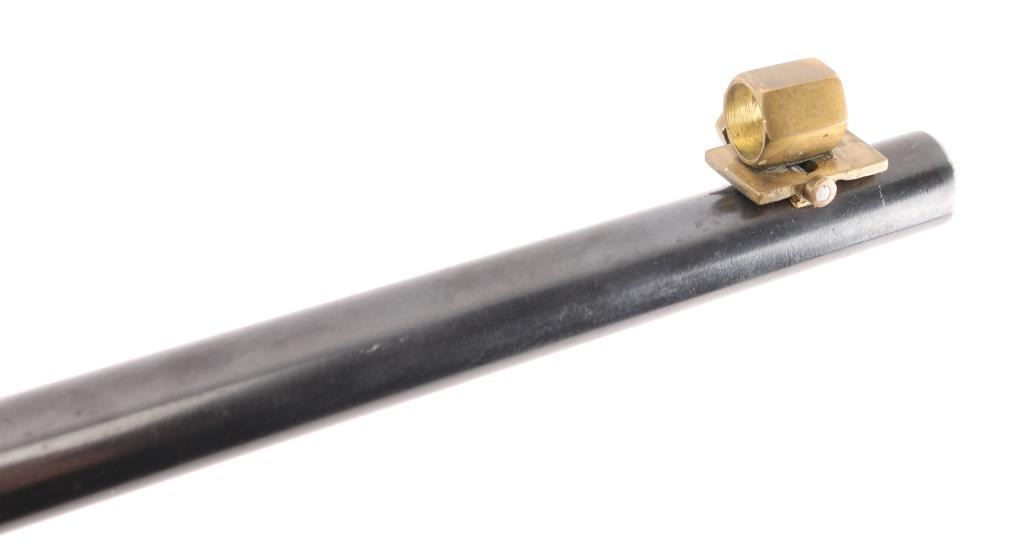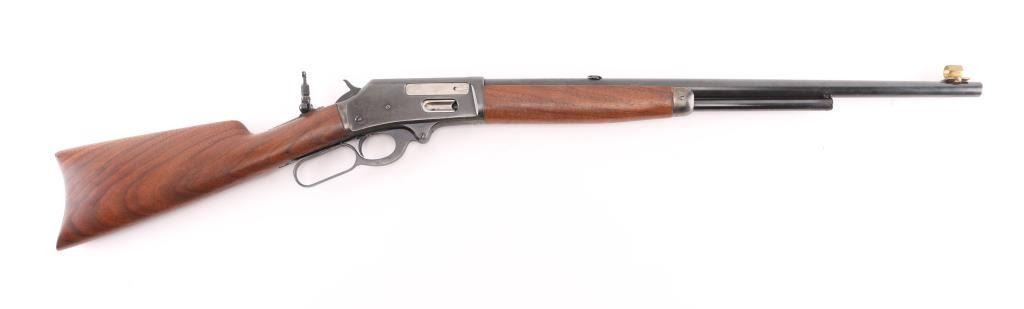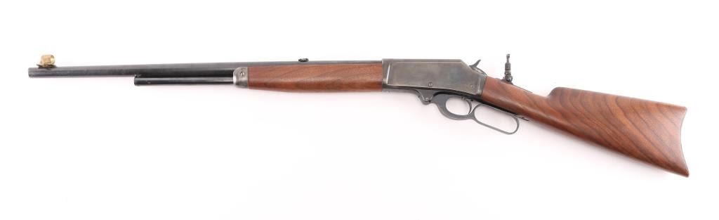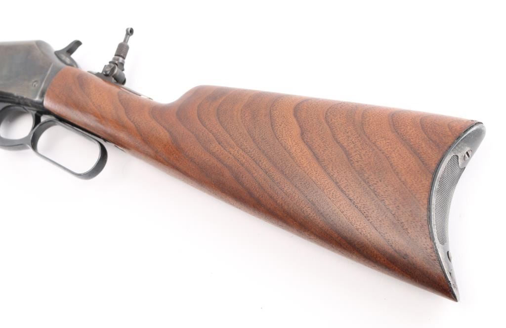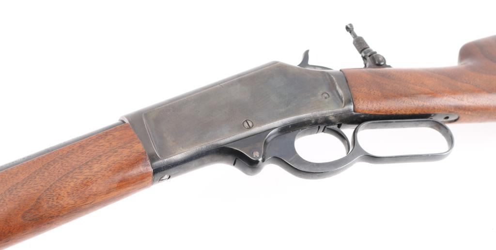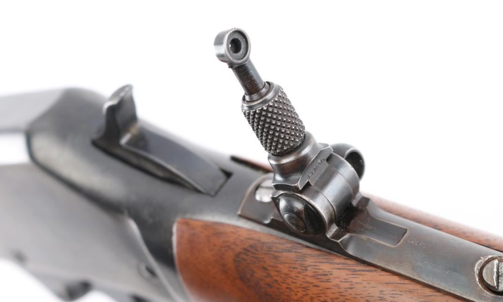 Vintage lever action rifle produced 1911-1917. 22 inch round barrel with adjustable peep sight installed on the tang, rear sight removed with insert in the dovetail, brass hooded adjustable post front sight installed..2/3 length magazine. Crescent buttplate with checkered panel. Receiver drilled tapped for optic. Bore is rough but good rifling, Blue is about 85% with scratches, edge/handling wear, receiver has been reblue with scattered pin-prick pitting showing under the finish, mostly on the left side. Wood stocks are very good. may be replacements. NRA Condition-Fair. C&R Firearm.