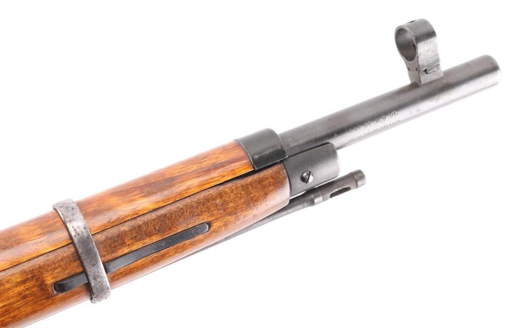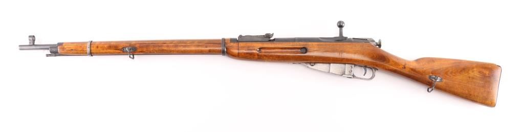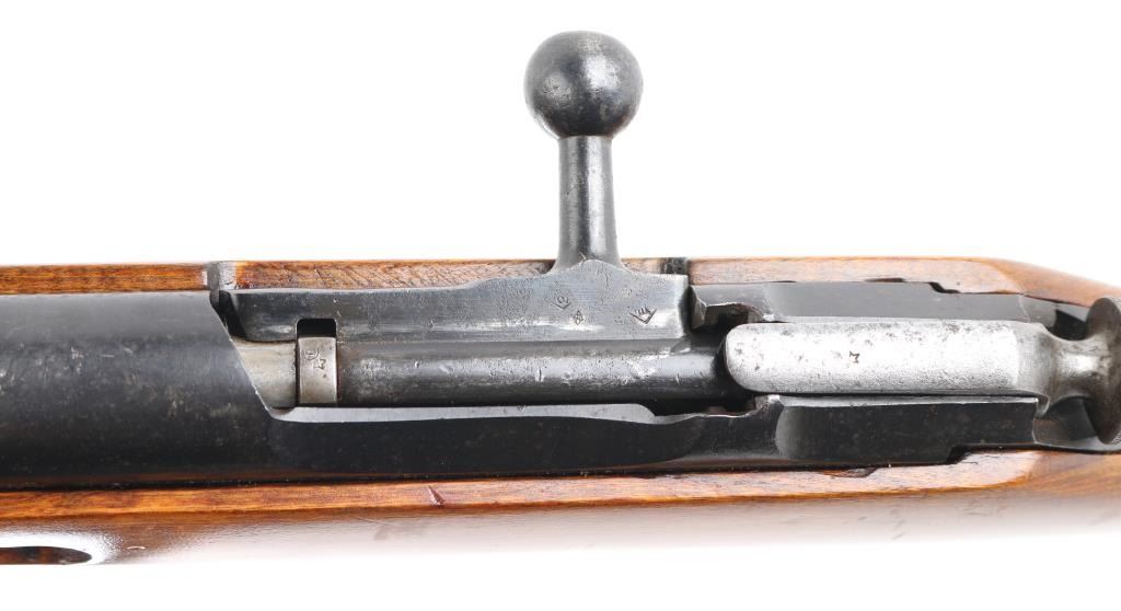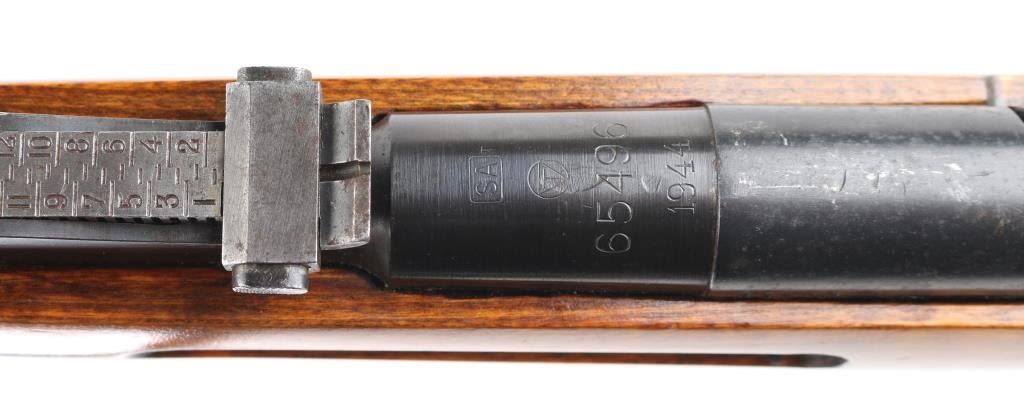 Finnish military bolt action rifle imported by CAI, St Albans VT. Barrel marked with serial number "SA" in square, & "T" in triangle, dated 1944. (Tikka produced these rifles up to 44) Features Escutcheon plates with a round holes with Finnish sling swivels, a Potbelly stock, 29" barrel, bayonet lug, post/ring, tangent rear sight, cleaning rod under barrel, straight bolt handle, manual safety, semi pistol grip stock. Straight wartime spliced stock. Bore is excellent/bright, strong rifling. Retains 70% bluing with handling wear on the magazine , some scattered light pitting on the receiver, action is smooth, wood is sound/very good. has been varnished. Mismatched serial numbers'. NRA Condition-Very Good. C&R Firearm.