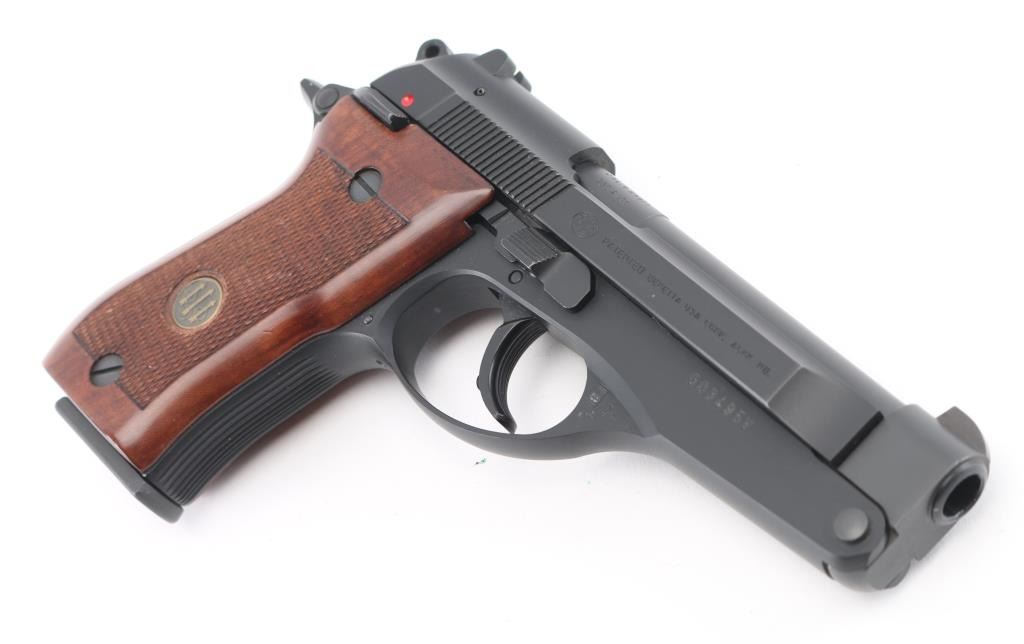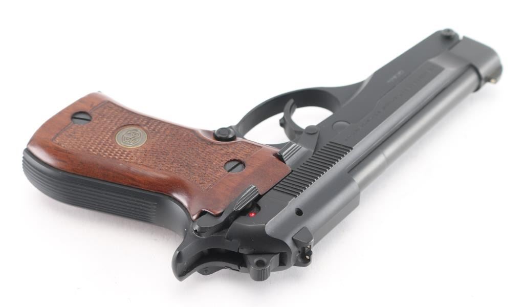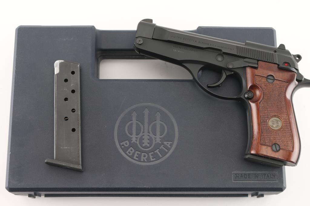 Made in Italy this is a semi-auto pistol chambered for .380 ACP ammunition. It has a 4.25" fixed barrel, steel slide, alloy frame, three dot sights, and semi-checkered wood grip panels with PB medallions. Metal finish looks great. Bore looks like new. Grips are fine. Comes with original factory hard case, owners manual, and two magazines. Condition is near NRA Perfect *Modern Firearm*