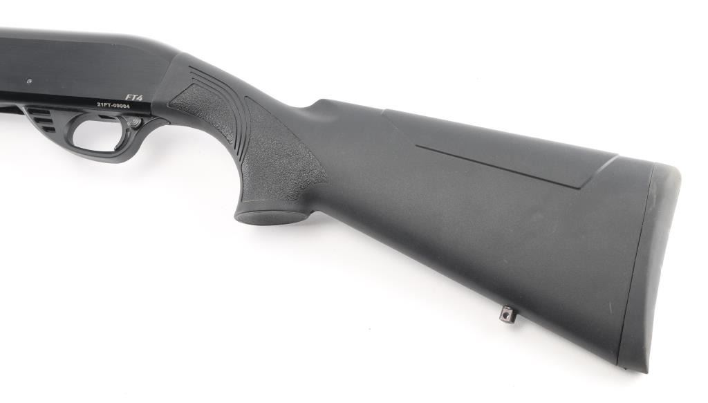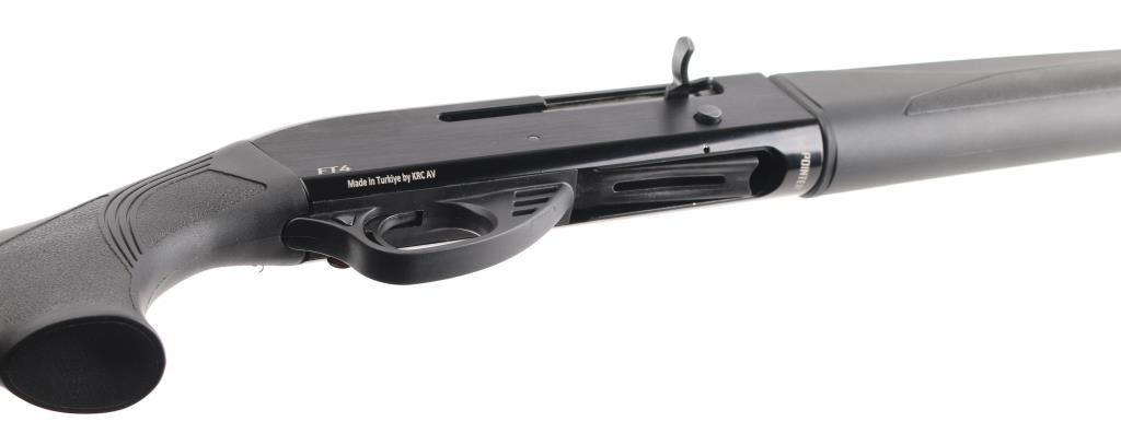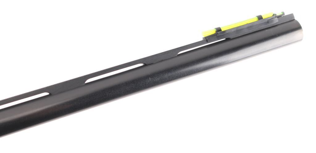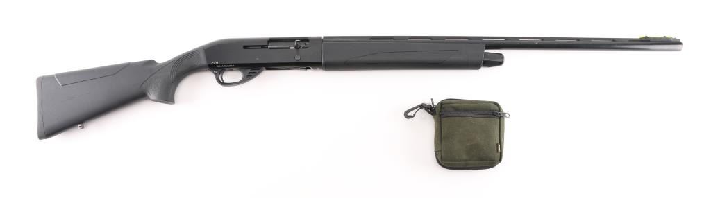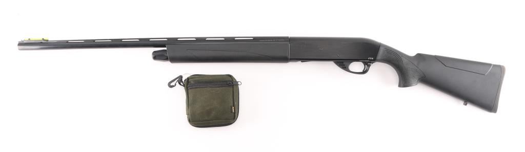 Turkish made, Field TEK 4, black, semi-automatic shotgun with approximately 28" vent rib barrel, bore is bright, green fiber optic front sight, 3" chamber, synthetic stocks, smooth trigger, rubber recoil pad, deep scratch on right side of barrel, interchangeable chokes, five chokes total, four stock adjustment parts, green Allen ammo pouch. LOP is approximately 14 1/4". **NRA Very Good** Modern Firearm