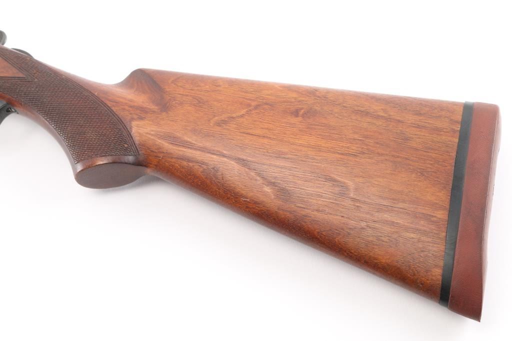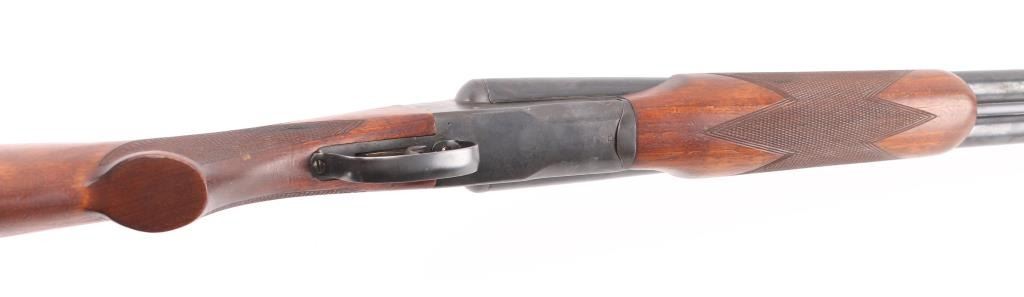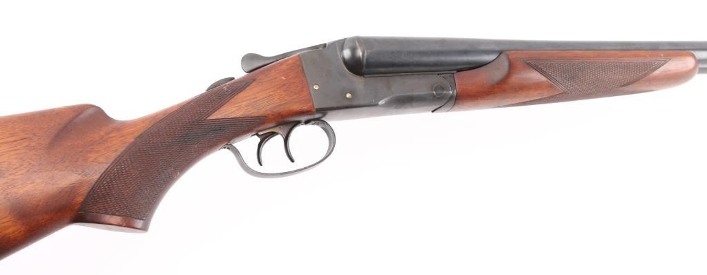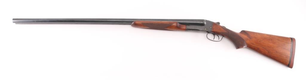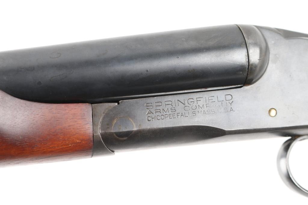 Box lock SxS shotgun chambered in 12 Ga. 31.75" barrels with serrated rib with brass bead. Blue finish, tang safety,walnut stocks with checkered forearm and grip, double triggers, Noshoc rubber recoil pad with black spacer. Springfield was the trade name used by Stevens, manufactured 1929-1948 as it has no dates code on the barrel. LOP is 14". Bores are excellent/bright, locks up tight, wood and blue finish are very good with minor scratches, handling wear. NRA Condition-Very good. C&R Firearm.