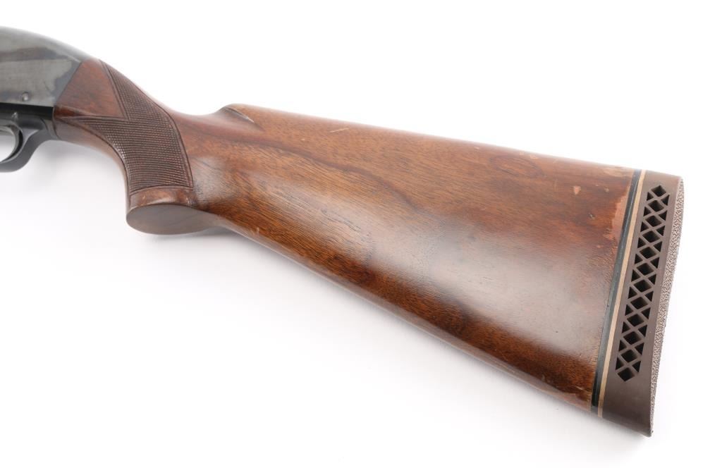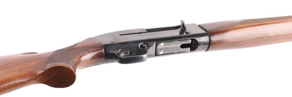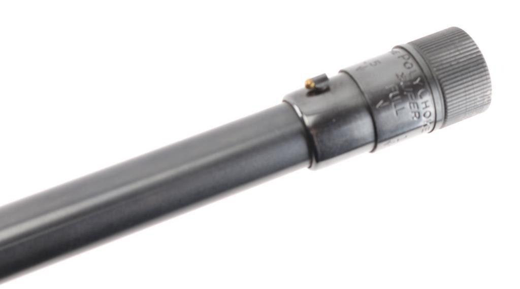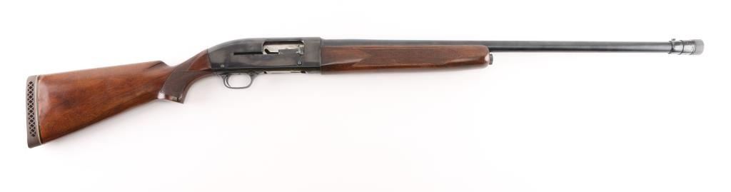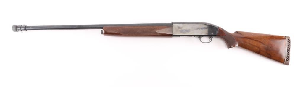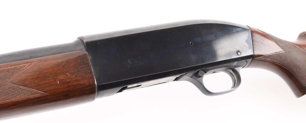 American made semi-automatic shotgun, 2 3/4" chamber, blued finish, approximately 27" barrel with adjustable choke, barrel is marked "Full," bore is dull but might improve with cleaning, checkered wood forend, wood buttstock with checkered pistol grip, ventilated brown rubber Pachmayr recoil pad, barrel finish has light scratches, scratches on stocks with some finish missing from the buttstock, LOP is approximately 14 1/2. The Model 50 is a semi-automatic shotgun using a short recoil action. Unlike most other short recoil designs, the barrel on the Model 50 is completely static. Instead, the weapon uses a floating breech system consisting of a chamber and forcing cone patented by David Marshall Williams; when the weapon fires, this breech moves back about 0.1 inches (0.25 centimeters), causing the bolt to move backward. A return spring pushes the bolt back forward. **NRA Good** Modern Firearm