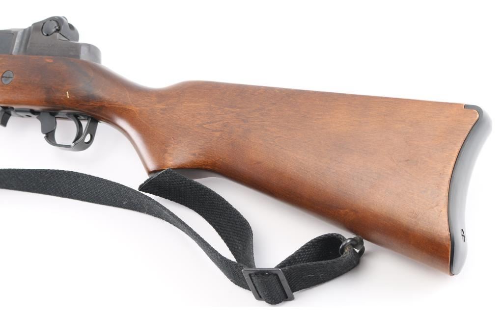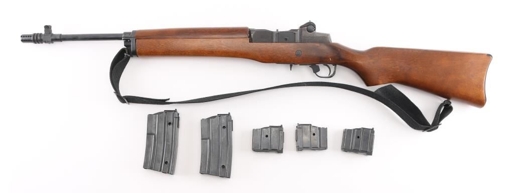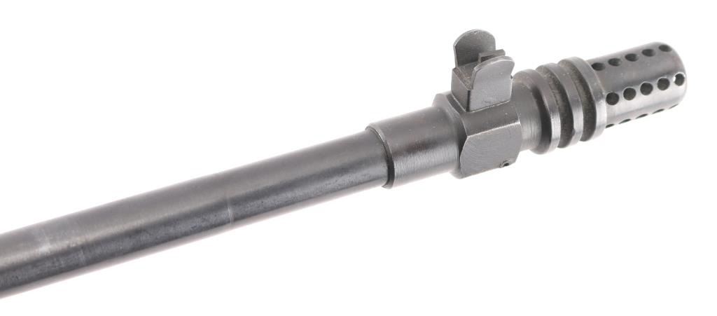 Semi-automatic rifle with 18" barrel, bore is bright, muzzle break, blade front sight, fully-adjustable rear peep sight, wood stocks are in good condition, smooth trigger, metal finish is dull, hard plastic butt plate, LOP 12 1/2". Includes sling, four 3-round magazines and two 10-round magazines. **NRA Good** Modern Firearm