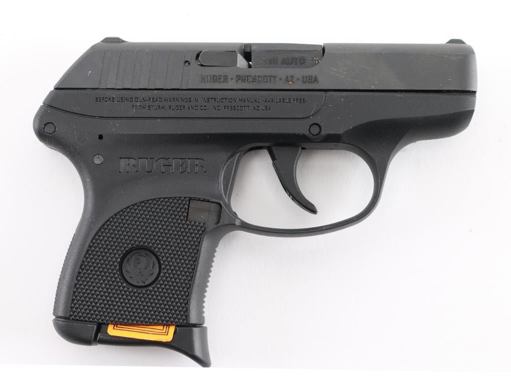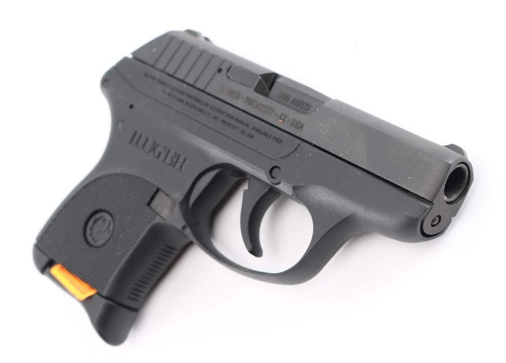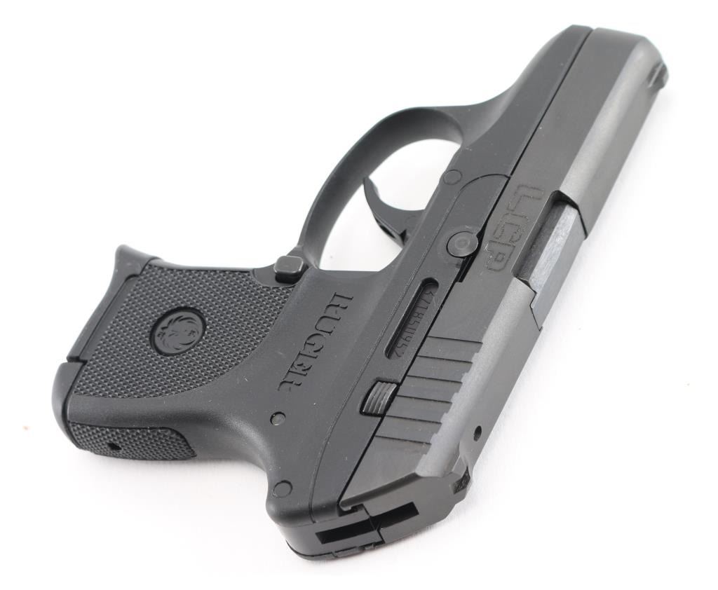 "Model 3701" - American made semi-automatic pistol, SA, through-hardened steel slide, slide and barrel are black oxide finished, black textured one-piece, high-performance, glass-filled nylon grip frame, approximately 2 3/4" barrel, fixed front and rear sights are integral to the slide, smooth trigger, the hammer is recessed within the slide, single stack 6-round magazine. Includes the original cardboard box with instruction manual, Ruger soft-sided holster, and cable lock with two keys. **NRA Near Perfect** Modern Firearm