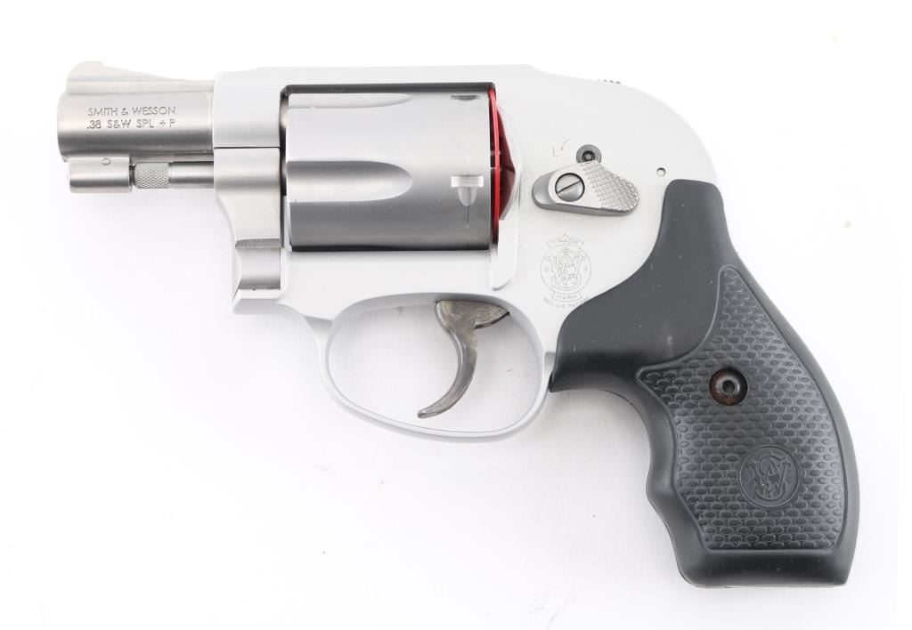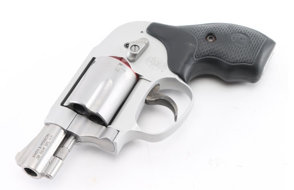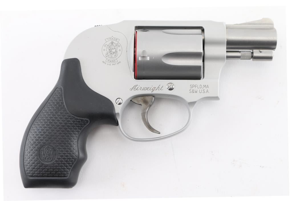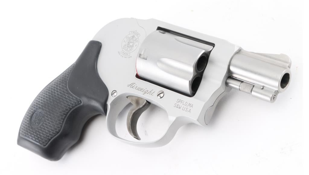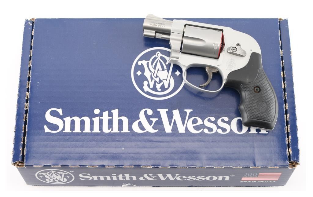 American made 5-shot revolver, J-frame, rated for +P ammunition, DA/SA, stainless steel barrel and cylinder, lightweight aluminum alloy frame, matte finish, approximately 1 7/8" barrel, bore and cylinders are bright, serrated ramp front sight, integral notch rear sight, snag-free enclosed hammer with serrated spur, smooth trigger, checkered synthetic grips. Includes the original cardboard box and a cable lock with two keys. **NRA Near Perfect** Modern Firearm
