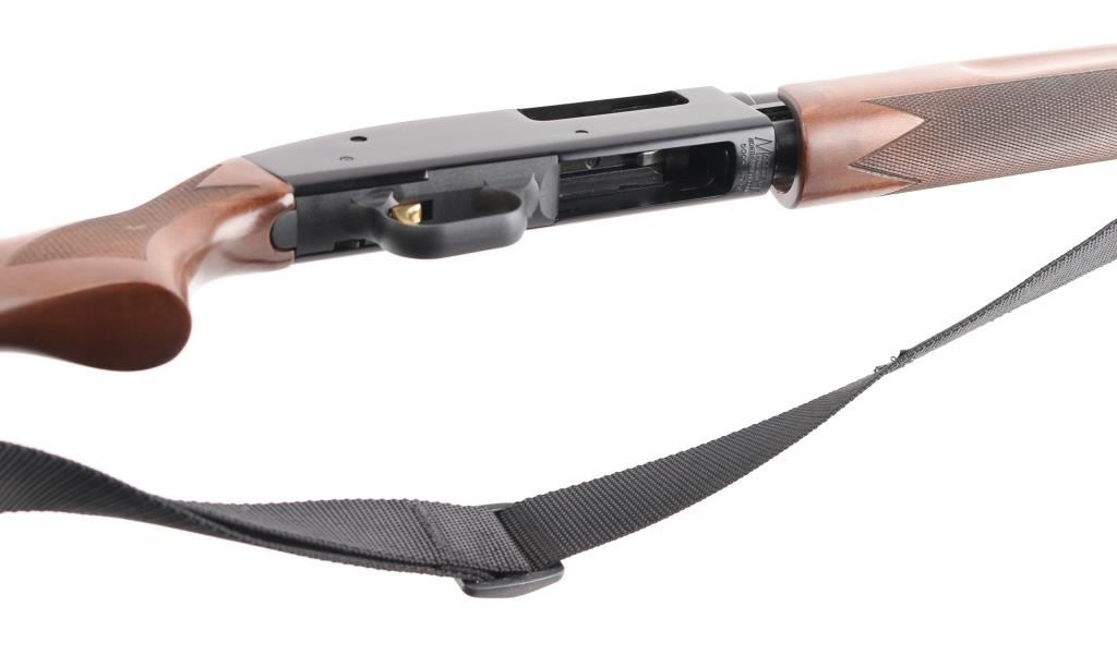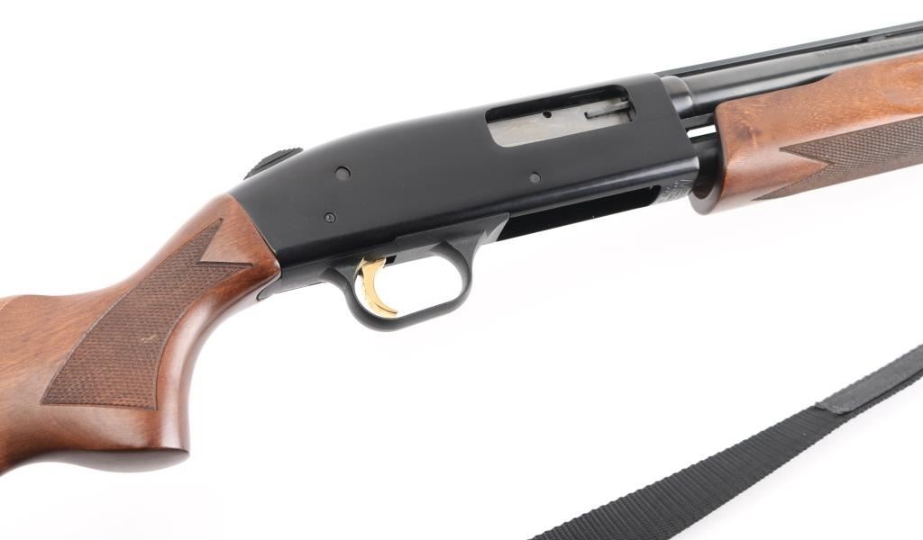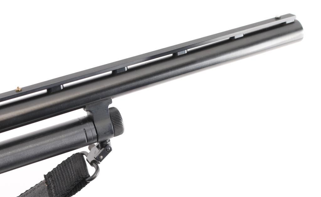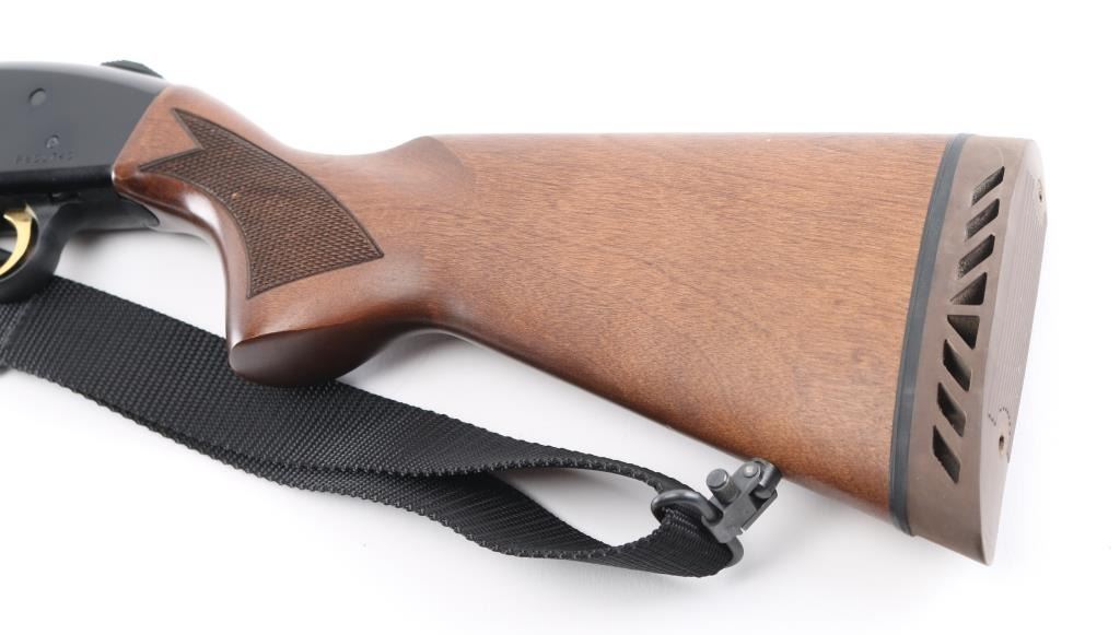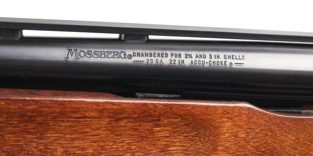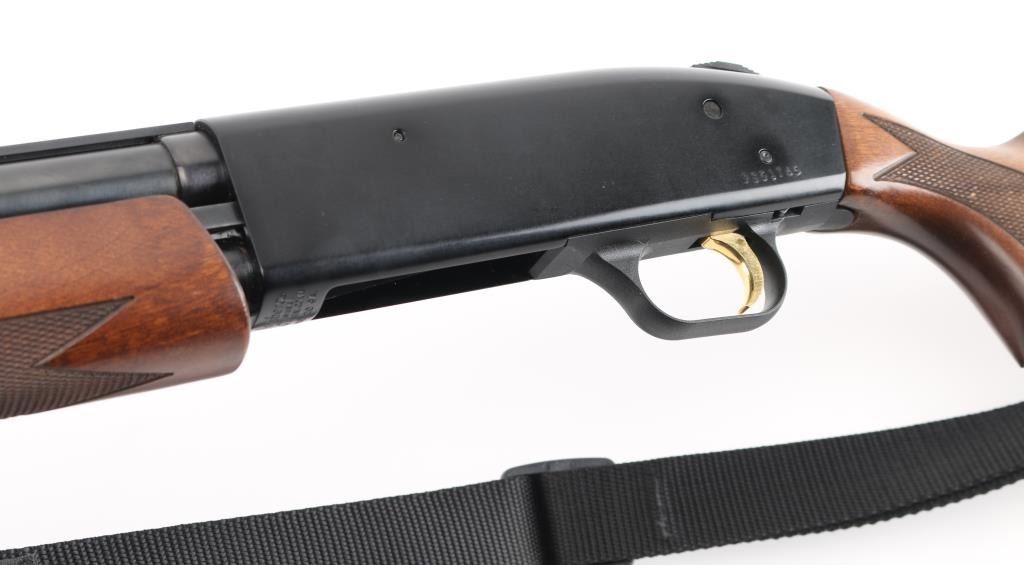 American made pump action shotgun chambered for 2.75" & 3" 20 gauge shotgun shells. It sports a 22" blued, vent rib barrel with a white bead front sight and a brass mid-bead. It has a 3/4 length mag tube, smooth gold tone trigger, and a tang safety. The wood stocks have press checkering on the forearm and at the wrist. It has a nice recoil pad and comes with a sling attached. The metal finish looks great. Bore looks great. Stocks look great. LOP is 13". The Accu-Choke in the gun is marked X-Full. Condition is NRA Excellent. *Modern Firearm*