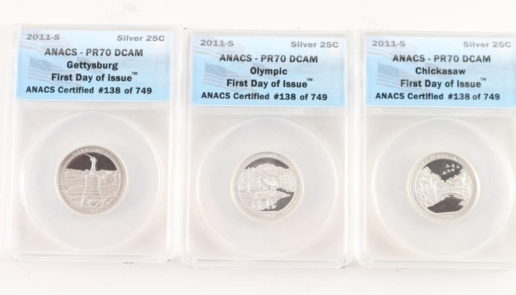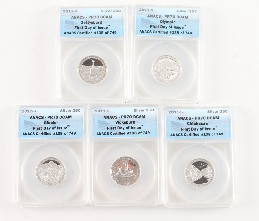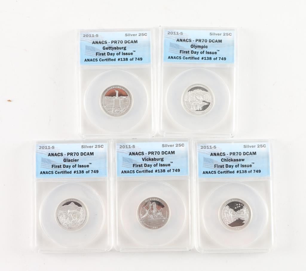 2011 Edition, MS70 Graded by ANACS- #138 of 749. All in mint condition. In wooden coin case.