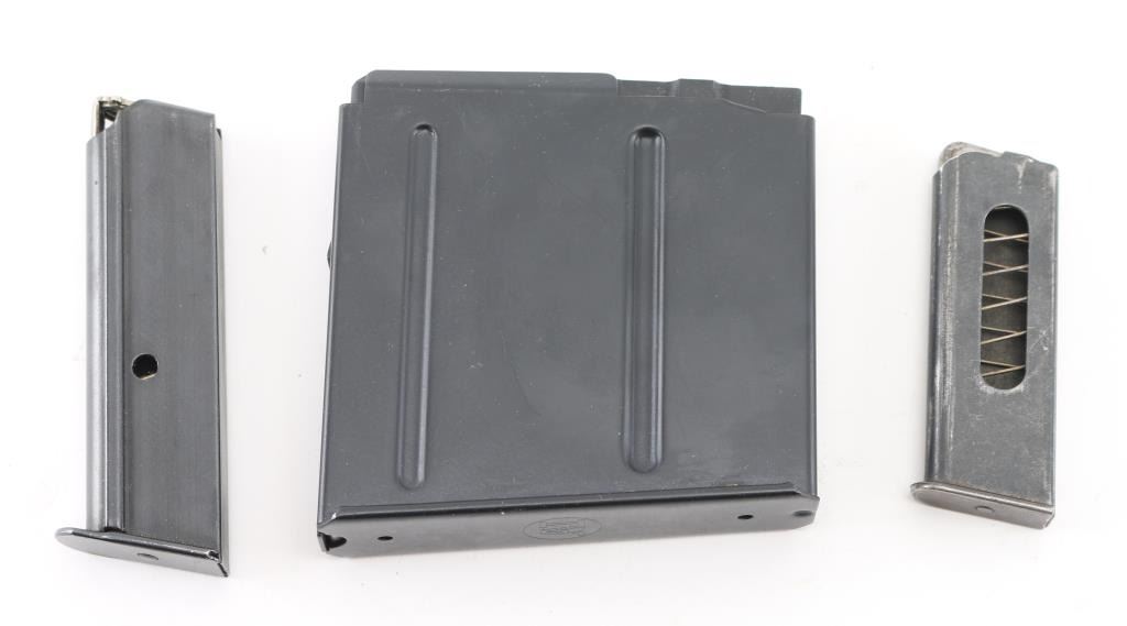 includes a very good condition AICS 300 WM, very good condition unmarked mag for Walther PP or PPK/S (appears to be 380 cal), good or better condition small pistol magazine (unmarked, appears to be for 25 ACP, heel release).