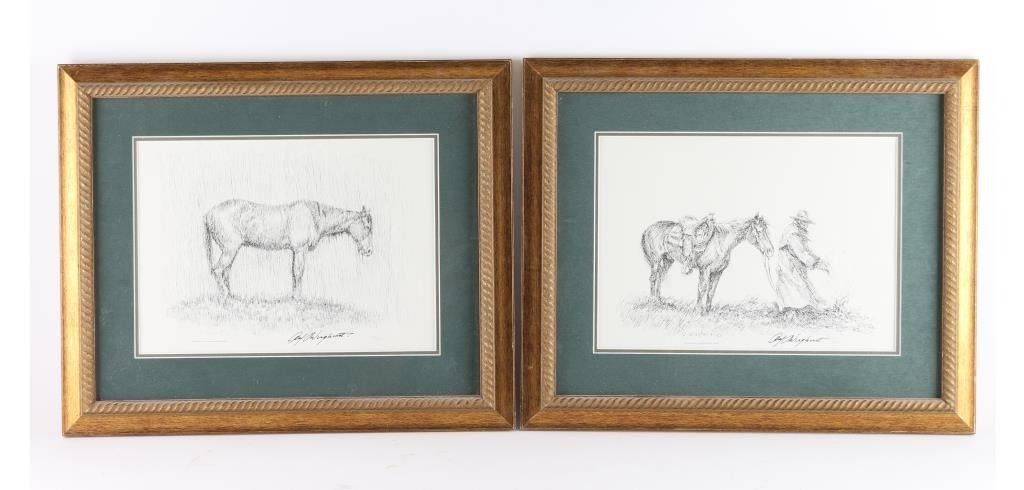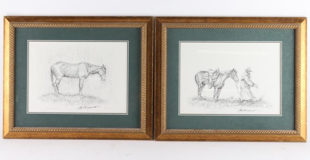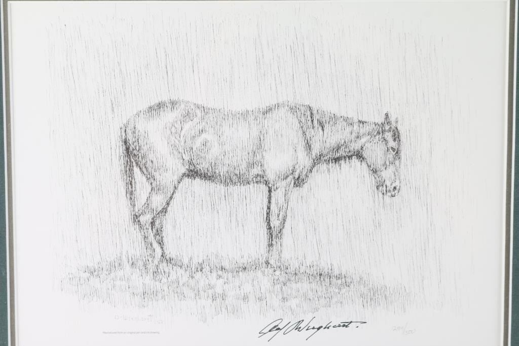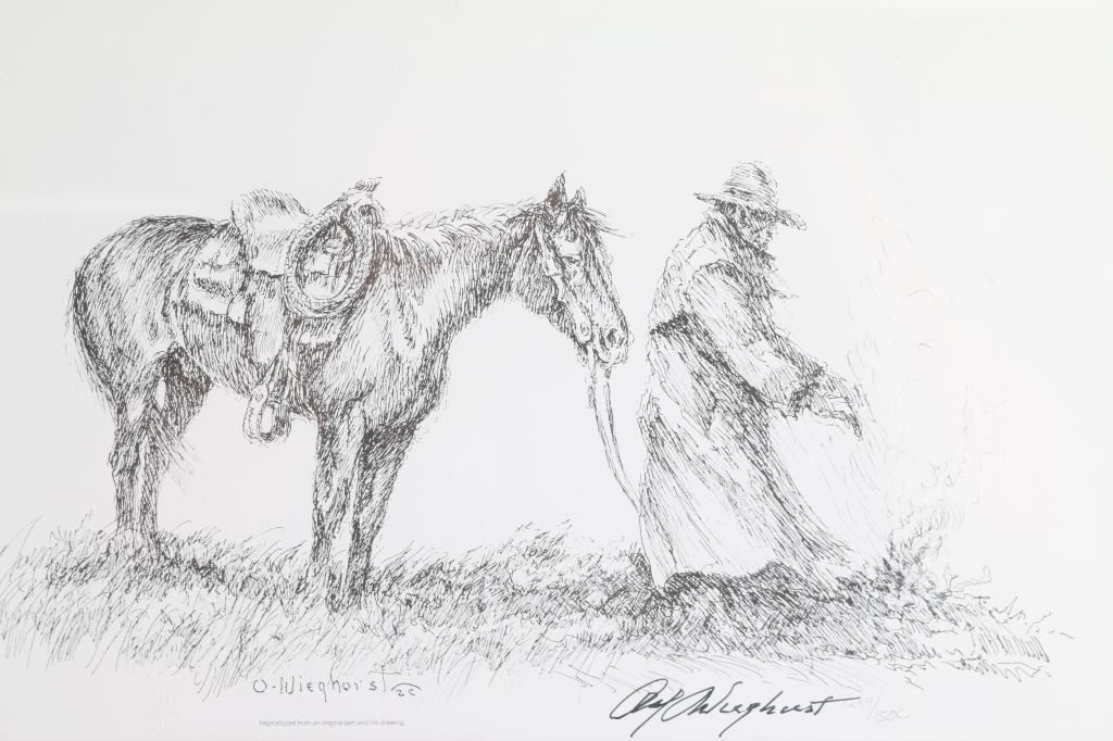 By artist "Olaf Weighorst" entitled "Partners" framed and matted in wood frame. Both are signed numbered 1294/1500. Image size 13x9.