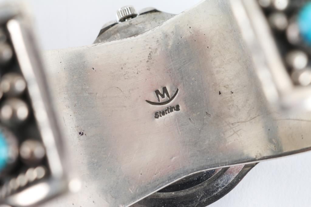 Heavy sterling silver set with turquoise stones. Maker marked with "M"