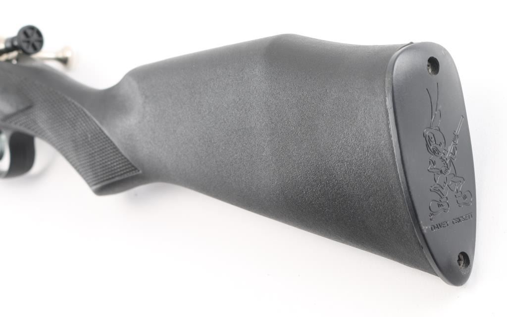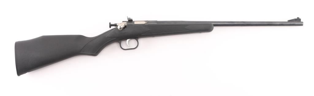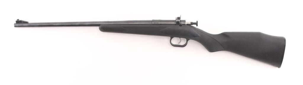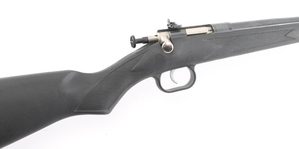 Bolt-action, manual cocking and a single-shot. Made of high quality forged steel & machined low scope bolt handle it puts safety first with a rebounding firing pin automatically blocked, preventing accidental discharge. 16" barrel, ramped front blade, adjustable rear peep, 30" O/A. Black polymer stock. Like new condition. NRA Condition-Excellent. Modern.