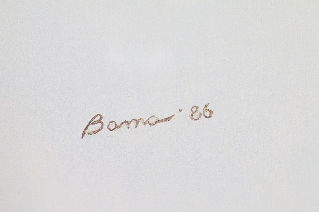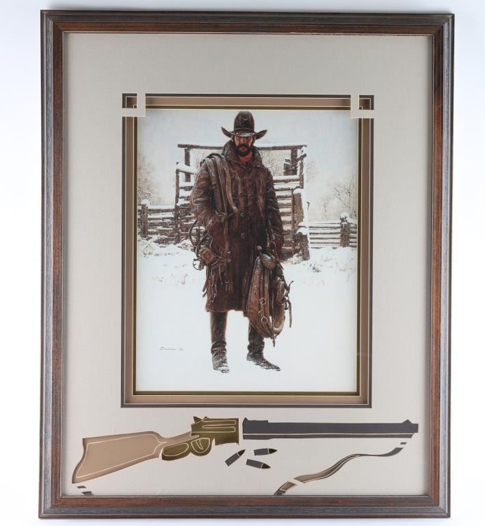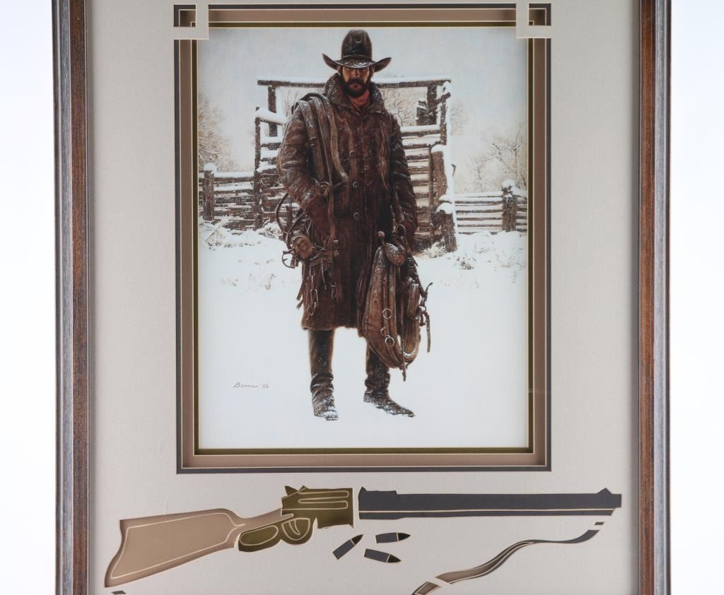 By "James Bama" entitled "The Teamster" signed and dated lower left, 1986. In triple matted and wood frame with glass overlay. In good condition measuring 22x15