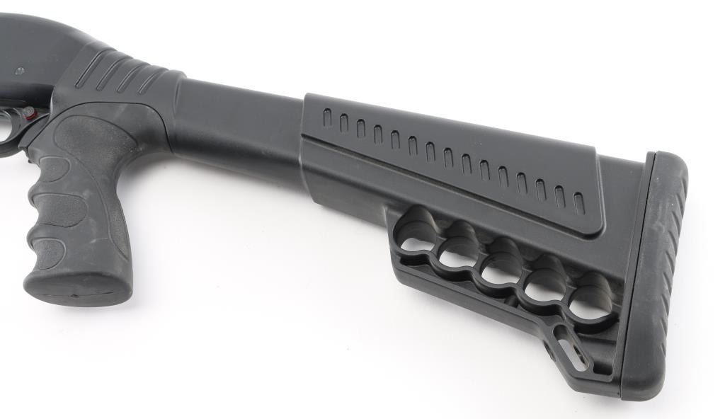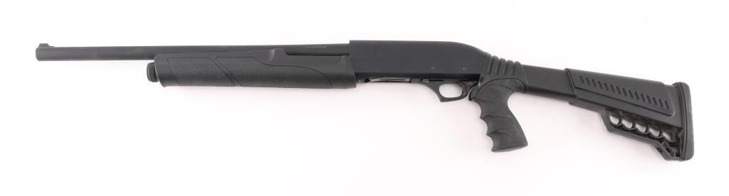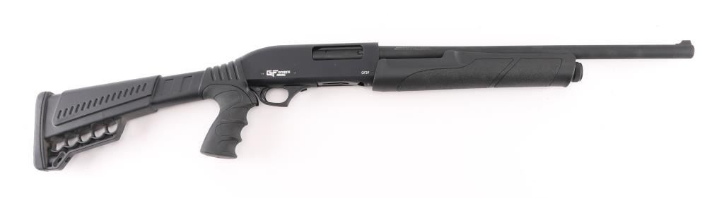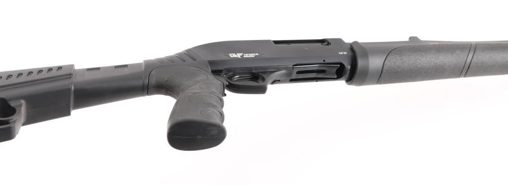 SN: 20-58137 Turkish made pump shotgun imported by GForce. Features a 20" barrel, matte black finish, black polymer furniture, blade front sight, push button safety and rubber recoil pad. Condition is like new with small scratch on receiver. Includes original factory cardboard box. NRA Excellent ** Modern Firearm **