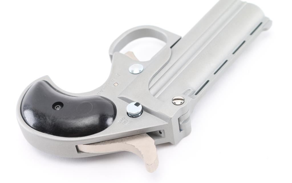 The 'Big Bore Guardian, Tip-up derringer chambered in 38 Spl. 3.5" vent rib barrels, fixed sights, push button safety, manual ejector, Satin cerakote finish, brown plastic grips .Comes in factory box with paperwork. Almost new new condition. NRA Condition-Excellent. Modern Firearm.