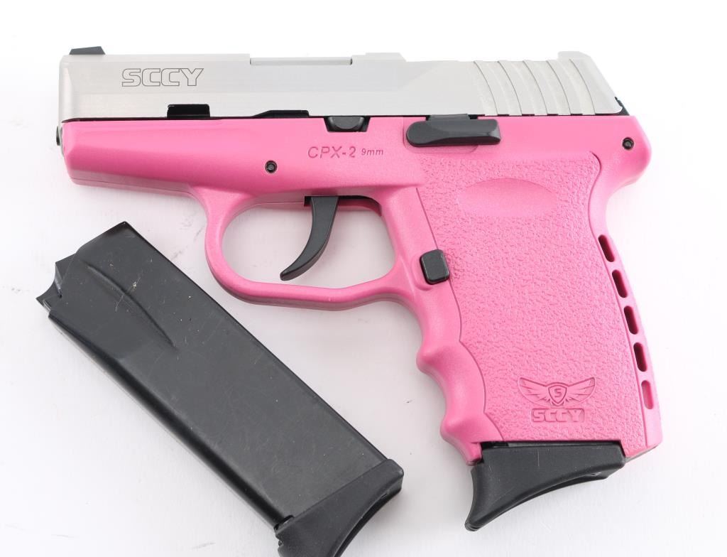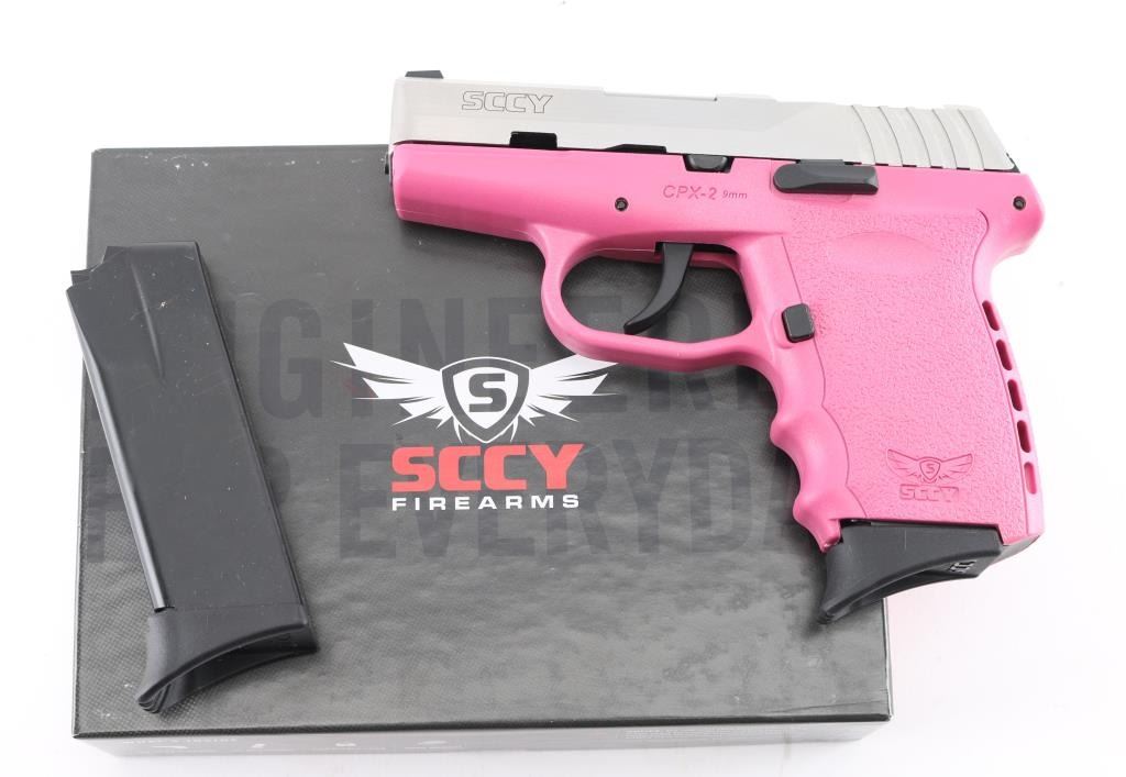 Made in America, the CPX-2 is a compact, hammer-fired, DAO pistol chambered in 9mm. It features a 3" barrel, stainless steel slide, pink polymer frame, dot white front sight, a CT rear optic sight is included in the box with hardware, tools, and battery (needs to be attached}. A 9lb trigger pull. Metal finish looks great, frame looks great. Bore is brightg. Comes with original factory cardboard box, owners manual, trigger lock and two (2) magazines w/pinky extension floor plates. Condition is NRA Excellent *Modern Firearm*
