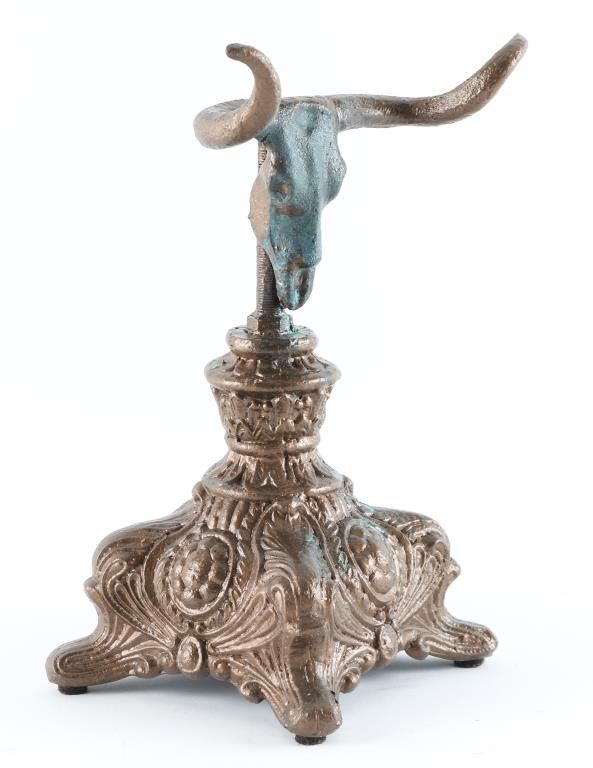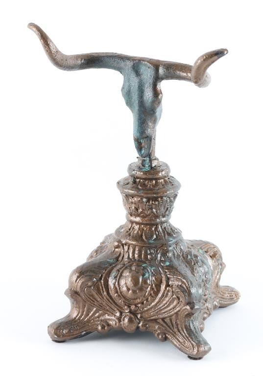 Cast Iron floral Stand, with long horn bull for hanging single action. In good condition, appears to be handmade.