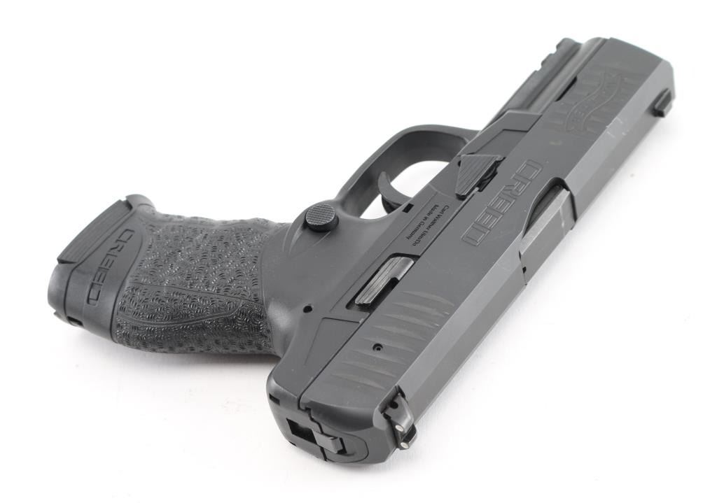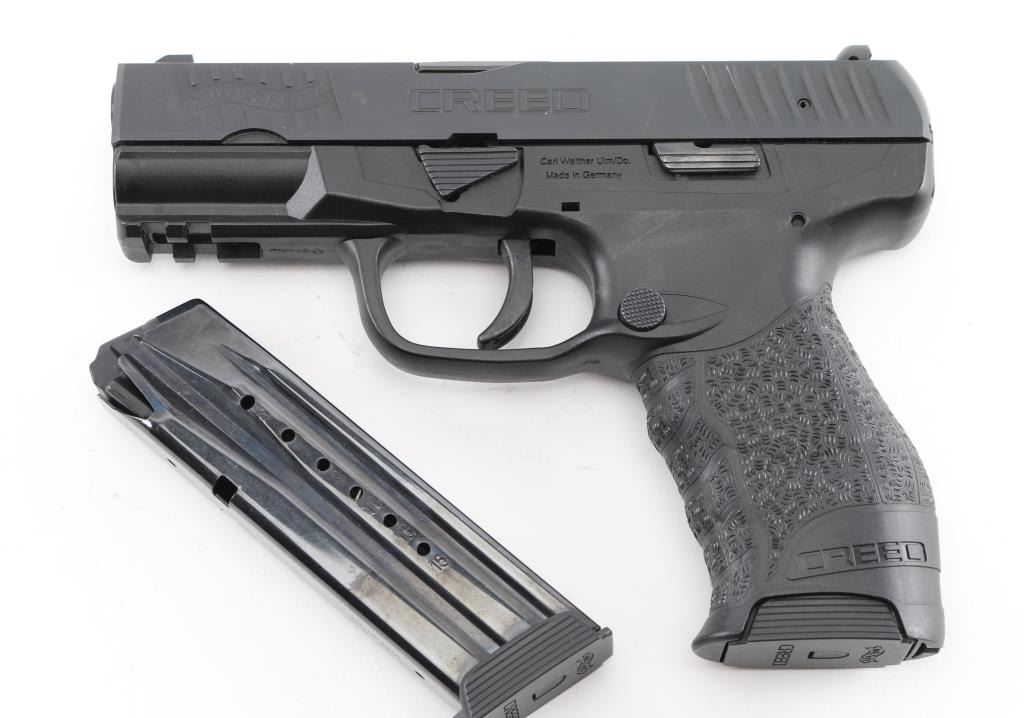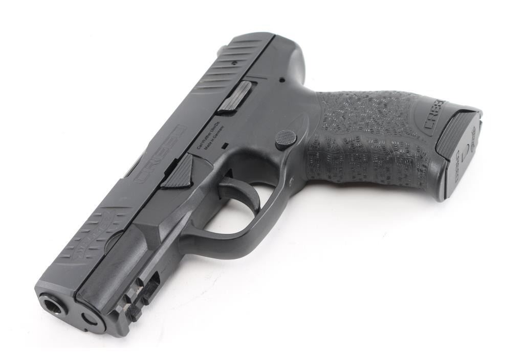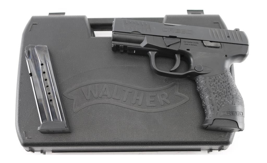 Made in Germany, the Creed offers a reinforced polymer frame, non-slip grip texturing and a pre-cocked double-action trigger system and a bobbed hammer that ensure a no-snag draw from a concealment. All metal components are treated with a corrosion and abrasion resistant TENIFER coating, providing a matte black hardened surface. It has a low profile steel 3-dot sights and a MIL-STD-1913 Picatinny rail for mounting a light or laser. It has front and rear cocking serrations on the slide. It comes with the original factory hard case, owners manual, cable lock and (2) 15 round magazines. The bore is great. This gun looks new. Condition: NRA Excellent+ Modern Firearm