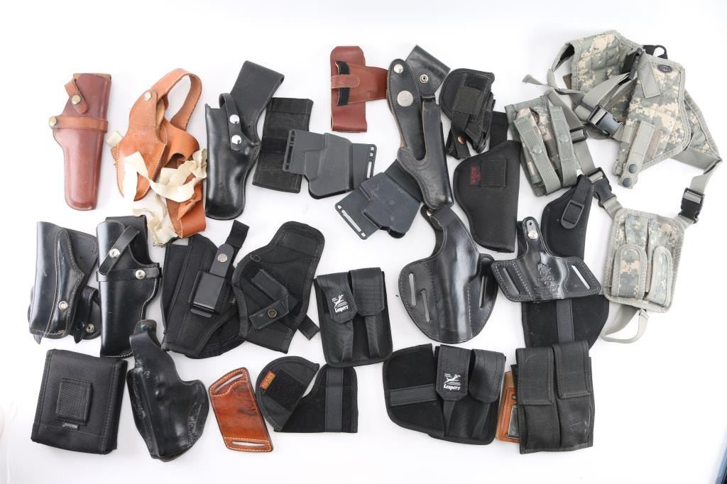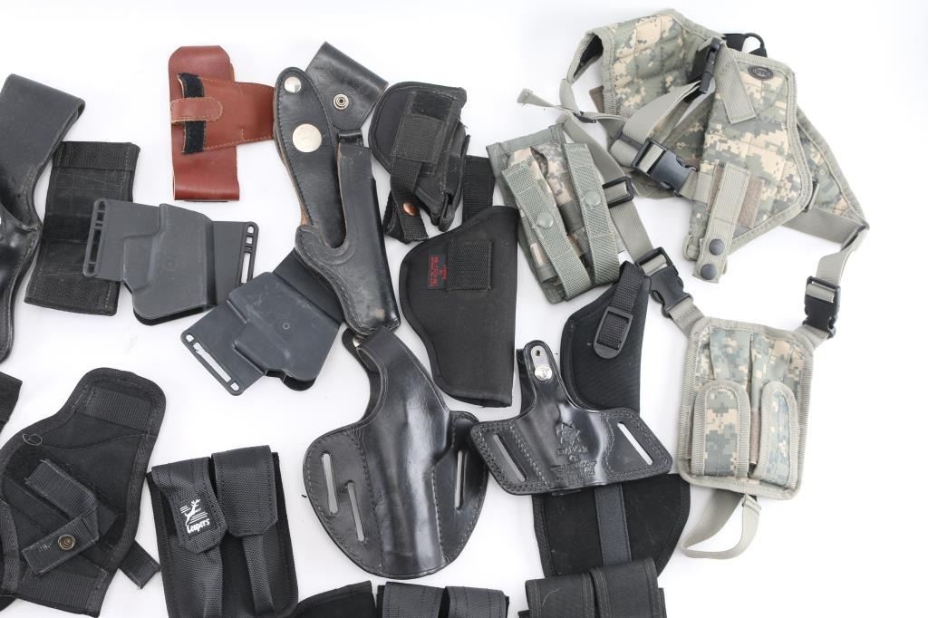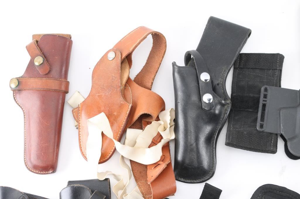 over 30 pieces total, including nylon and leather. Some appear military, most are commercial.