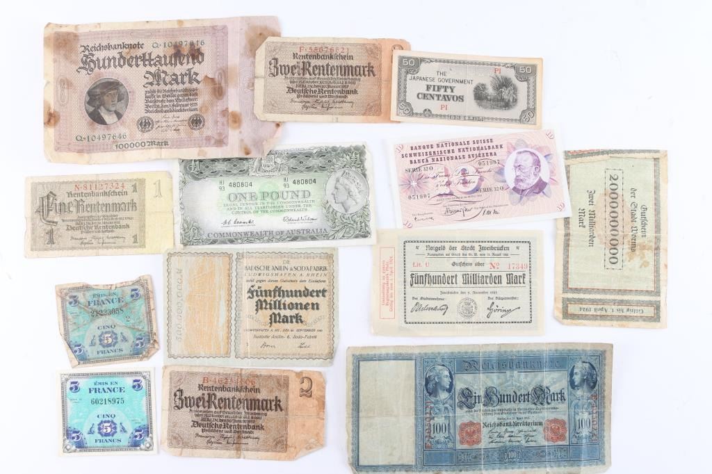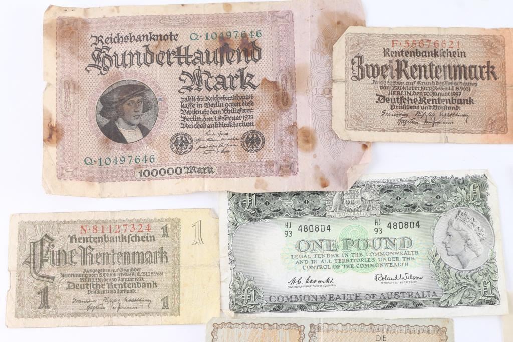 Includes German money , "Japanese",French, Switzerland, Australia, and more.