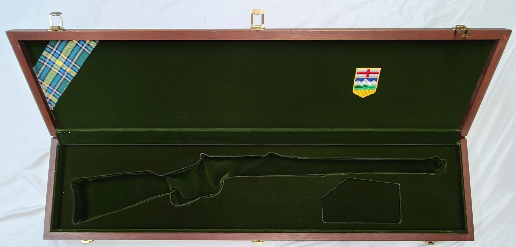 The mahogany presentation case comes with provincial tartan band and the Alberta