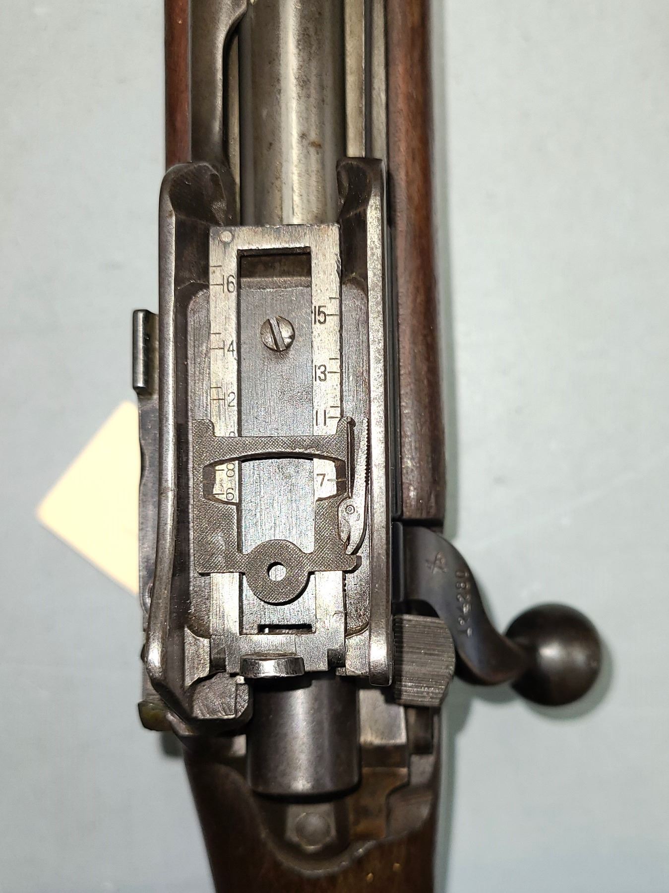 The rifle has original front and rear sights and the receiver has NOT been drilled.