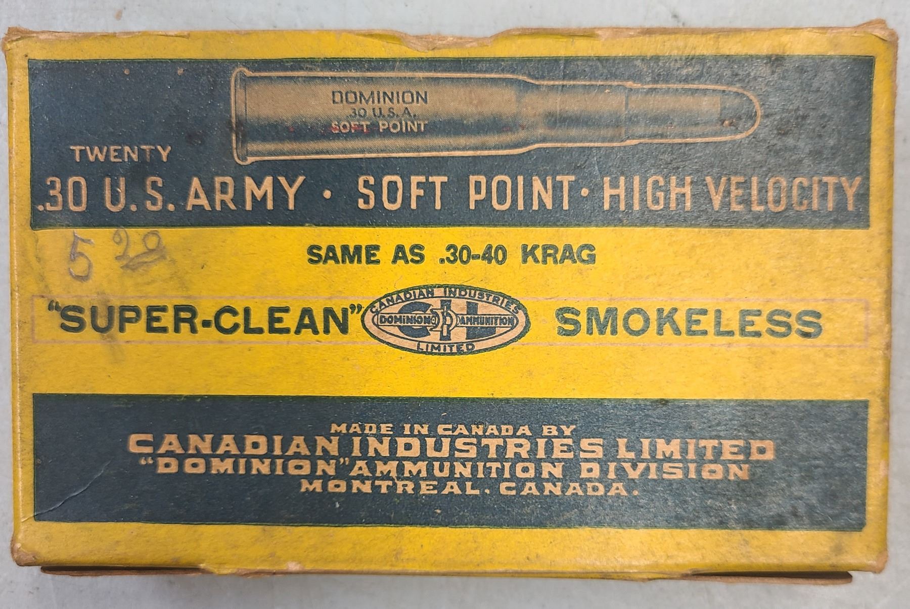 Lot 193 30-40 Krag (30 US) Dominion CIL Super Clean 220 gr Collector Ammo - 20 rds