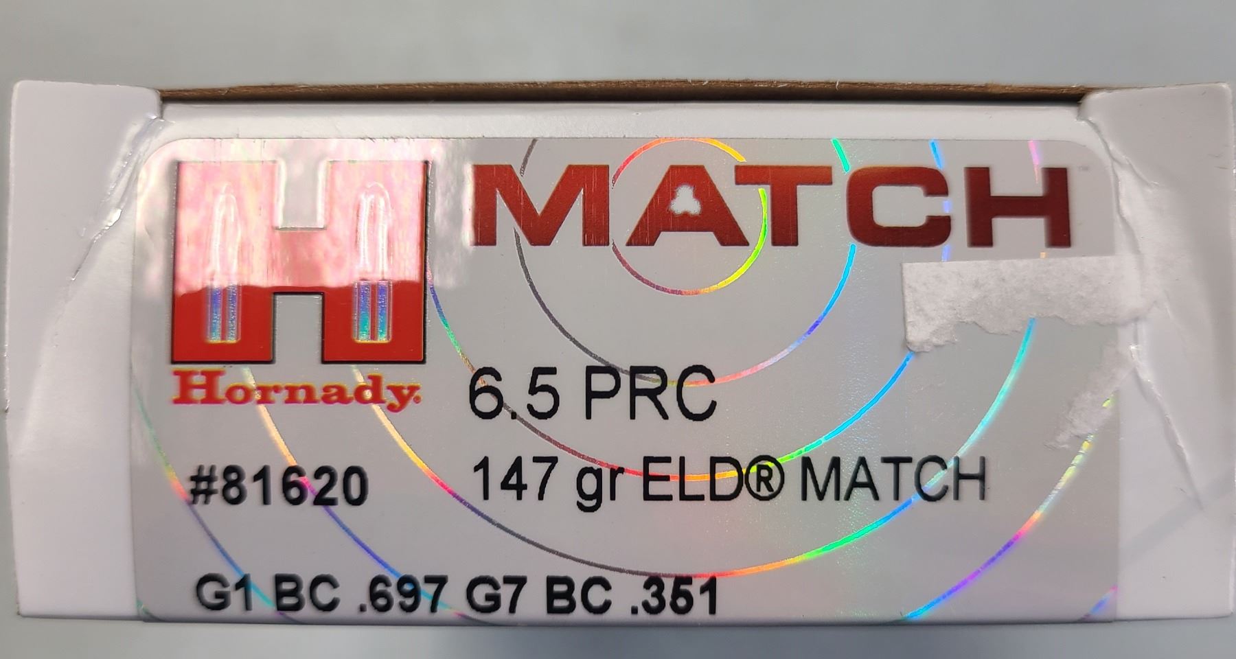 Lot 216 6.5 PRC Hornady Match Ammo 147 gr ELDX Match - 20 rds